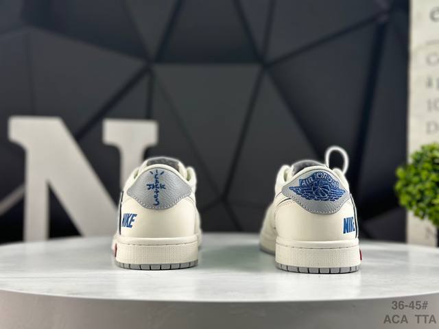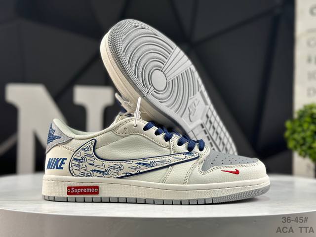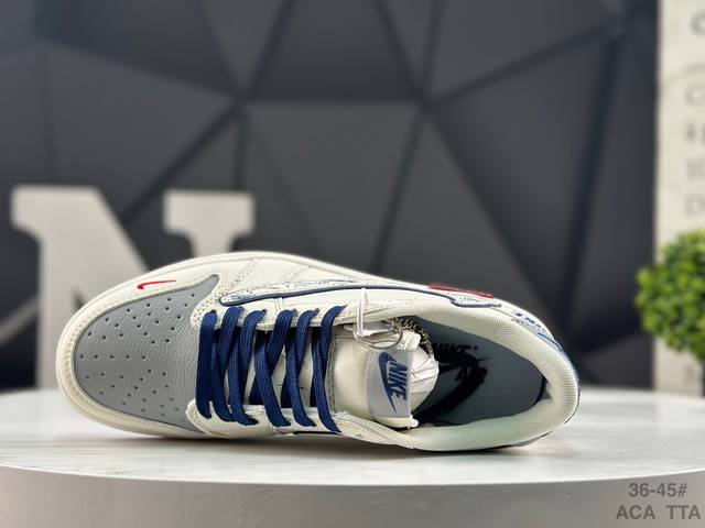 Special Offer! Nike Travis Scott X Fragment Design X Jordan Air Jordan 1 Low Og Sp. This multi-brand collaboration features Scott's unique musical style, Hiroshi Fujiwara's distinctive design style, and classic Jordan brand elements, making it a shoe with a unique identity and value. The fresh and three-dimensional appearance, coupled with the collaborative logo, further highlights its unique identity. This color scheme displays vitality and fashion, making it visually eye-catching. The texture and delicate details of the shoe body give it a high-end and stylish look. This "Reverse Swoosh" collaboration is a perfect combination of design and creativity, blending the individual styles of multiple parties. It's a highly anticipated trendy low-top casual sneaker. Custom shoe box, high-quality original from a large factory, extremely clean, with clean leather cutting and no rough edges, perfect details. Product Number: Jw1188 152. Sizes: 36, 36.5, 37.5, 38, 38.5, 39, 40, 40.5, 41, 42, 42.5, 43, 44. 44.5 45 Aca Tta