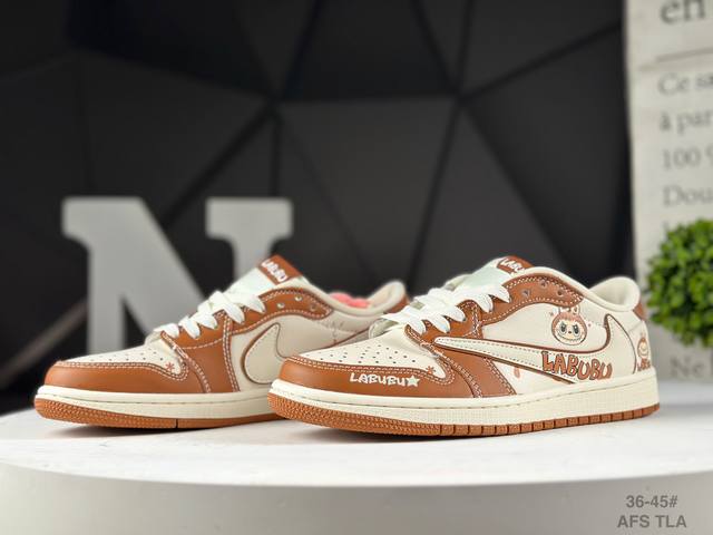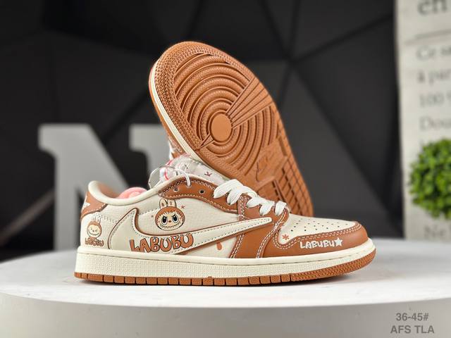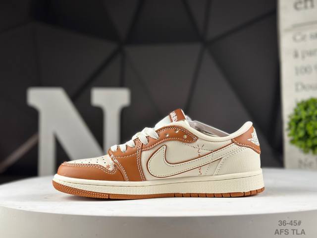 Top layer half size Nike Air Jordan 1 X Travis Scott Aj1 reverse hook Joe one reverse hook 'DIY' custom Nike low-top culture basketball shoes