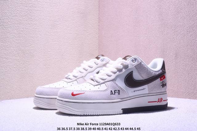 Stuart x Nike Air Force 1 '07 Low collaboration, featuring a classic black and white colorway, incorporating the classic Nike Air Force 1 material and a comfortable lacing design. Limited overseas release! Factory-grade Nike Air Force 1 '07 Low sneakers/casual shoes with intricate stitching and folded edges. Original last, original cardboard, custom shoe box, custom hardware accessories, original sole. Product Code: Sj1198-108. Sizes: 36, 36.5, 37.5, 38, 38.5, 39, 40, 40.5, 41, 42, 42.5, 43, 44, 44.5, 45. Xm1129Q633