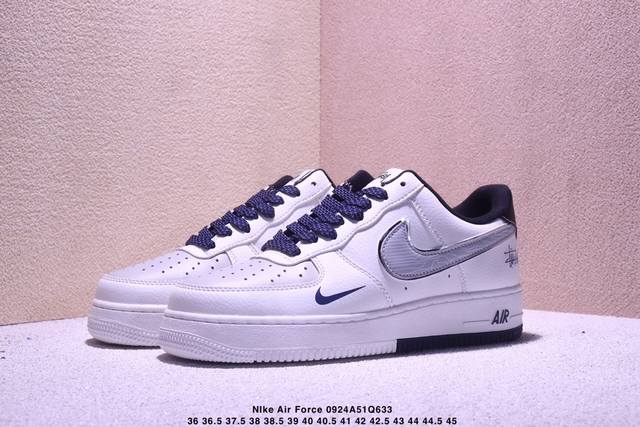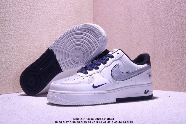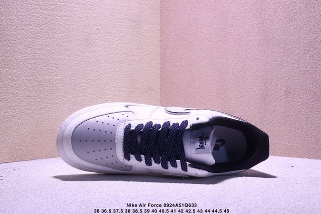 Stussy co-branded white, black and gray hook, fresh summer color scheme, limited overseas sale! Corporate-grade Nike Air Force 1 '07 Low Air Force One low-top sports shoes casual shoes, hemming sewing process is difficult, original last, original cardboard, custom shoe box, custom hardware accessories, original sole
