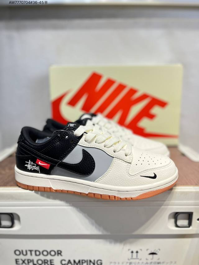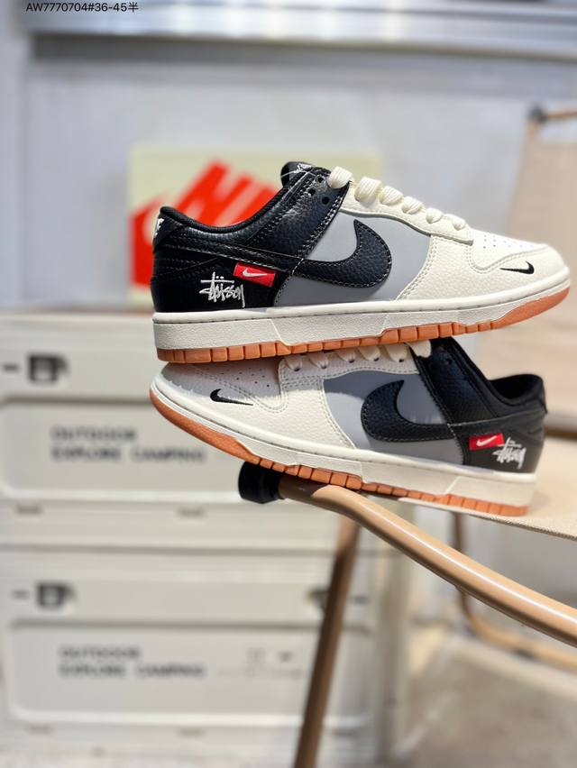 Stussy x Nike SB Dunk Low, a highly recommended new colorway from a leading manufacturer. Made from genuine top-grain material and featuring an exclusive, distilled finish, this shoe offers a superior visual and foot-feeling experience. Highly authentic quality and cleanliness from a leading manufacturer. The leather is cleanly cut with no burrs and features impeccable details. Qw5836 Aw7770704 #36-45 half-