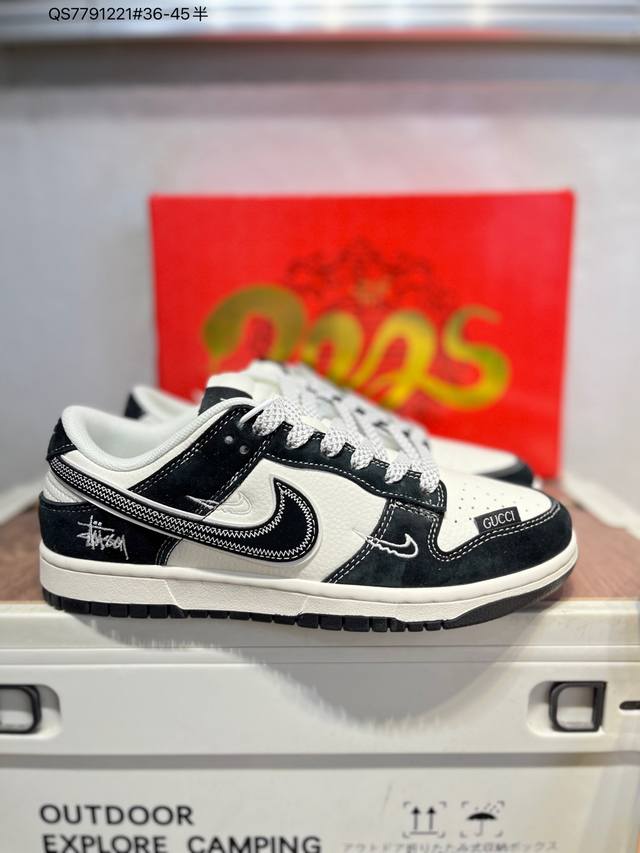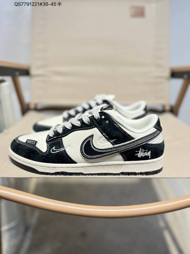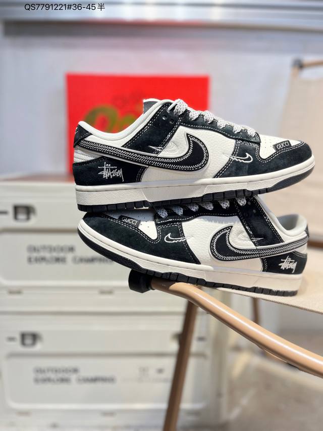 Stussy x Nike SB Dunk Low, highly recommended new colorway from a major manufacturer. Made with original top-grain materials and a unique design using steam distillation, resulting in a superior visual and tactile experience. High-quality factory-direct shipping with excellent cleanliness. Features include embroidered leather with clean cuts and no rough edges, perfect details. Fc1688 Qs7791221 #36-45.5