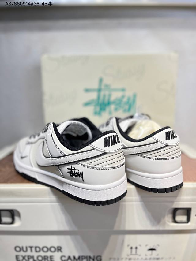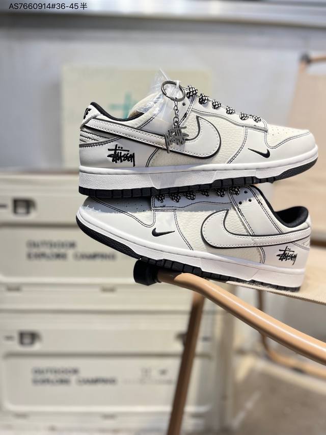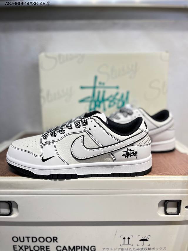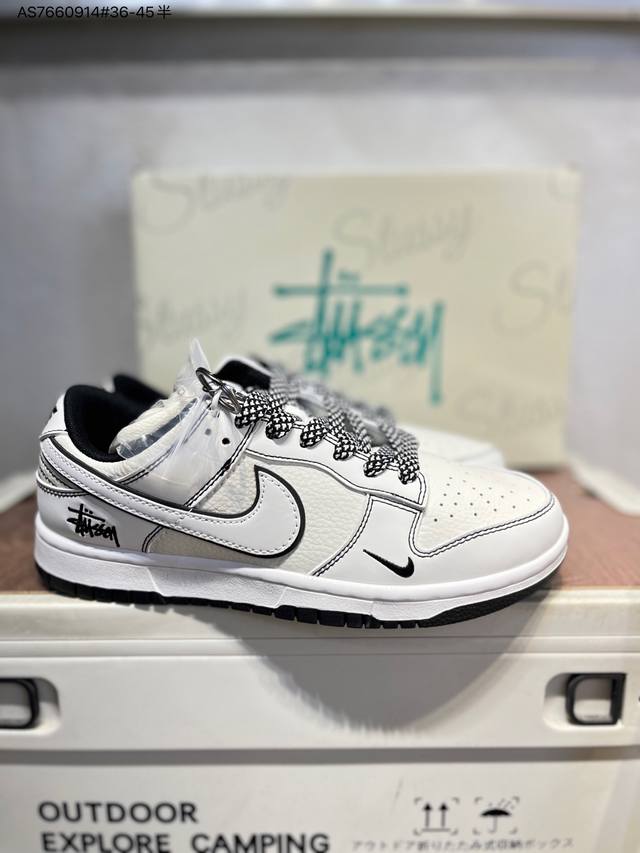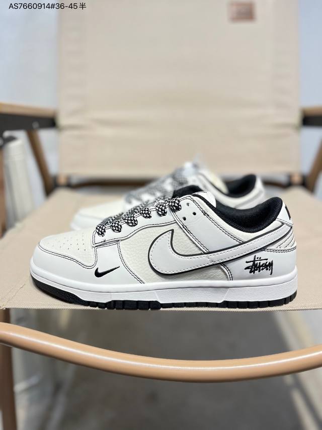 Stussy x Nike SB Dunk Low. Highly recommended new colorway from a major manufacturer. Made with original top-grain materials and a unique design using steam distillation. Offers a superior visual and tactile experience. High-quality factory-made, exceptionally clean. Features include electro-embroidery, clean leather cutting with no rough edges, and perfect details. Cs1688 As7660914# 36-45.5.