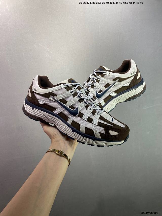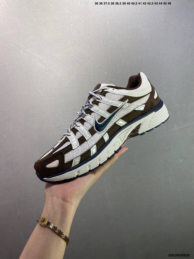 The company-grade Nike P-6000 running shoes feature red hooks on both the inside and outside. Made of breathable materials and ingenious overlays, they recreate the style of millennial running shoes for a stylish look. Inspired by the Nike Pegasus 25 and 6, they offer a street-chic, sporty aesthetic while providing everyday comfort. Item No.: By1021-103