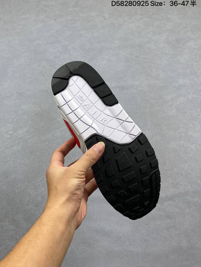 The Nike Air Max 1 PRM Air Cushioned Running Shoe for Men and Women is a retro, thick-soled, elevated sneaker inspired by French architecture, combining sporty style with modern elegance. It's the first shoe in the collection to feature Air. Its swift appearance, classic cushioning, and iconic wavy mudguard have made this sneaker a pioneer since 1987. Reflecting the classic '80s design with enhanced durability for everyday urban wear, the visible Max Air unit, originally designed for performance running, creates a timeless style with exceptional cushioning. Extra laces are included for easy mixing and matching, creating a personalized look. The padded low-top collar provides a sleek silhouette and exceptional comfort. The wavy mudguard and retro capsule-shaped Air window complete the classic look you've come to love. The rubber outsole provides enhanced traction and durability.