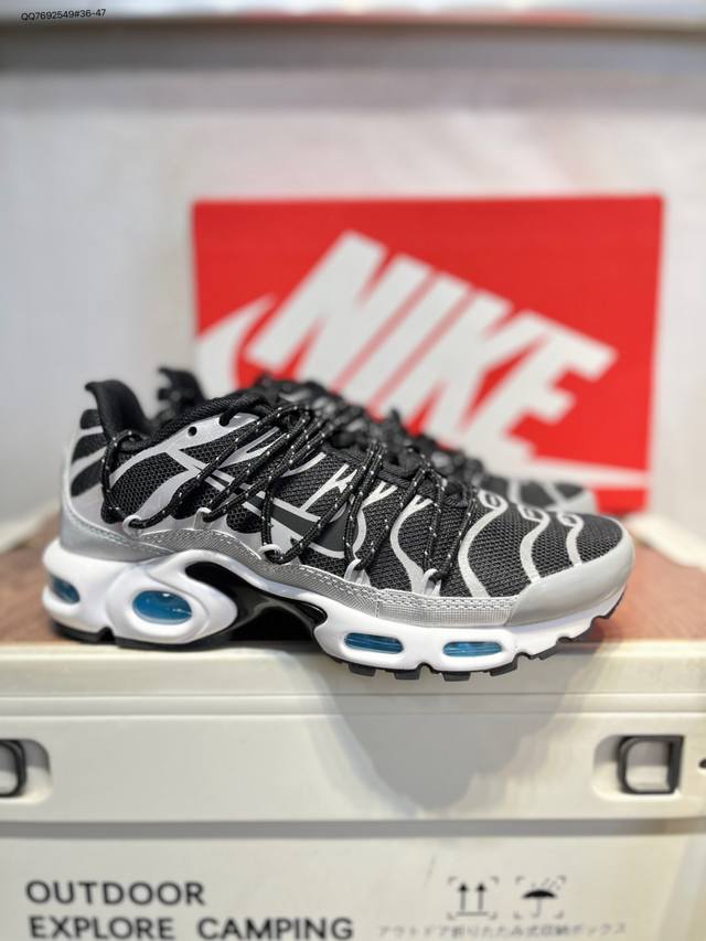 The Nike Air Max Plus is a representative of Nike's alternative shoe models. Born in 1996, it was the first running shoe to use TunedAir cushioning, characterized by its automatic pressure adjustment between air chambers. Now, this classic running shoe returns with a new look. The new upper material, combined with TPU wave texture and an inner bootie design, creates a sock-like fit and support, providing a more comfortable and supportive feel. The dynamic mesh lacing system effectively locks the foot in place. The midsole accurately integrates TunedAir and MaxAir cushioning, delivering a powerful and responsive cushioning experience. Product Code: Fd0670 Qq7692549#36-47 DD D