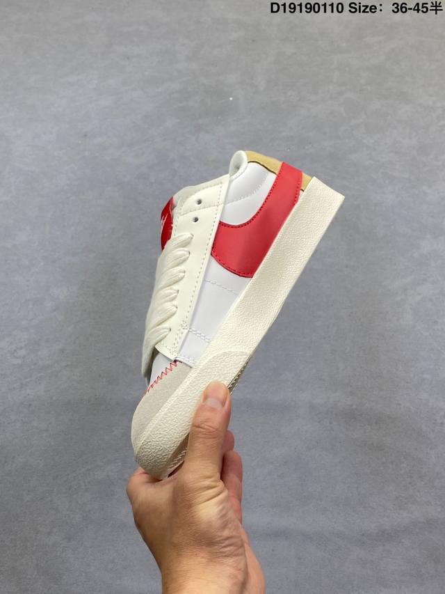 The Nike Blazer Low '77 Jumbo is a men's and women's athletic sneaker with a grippy floor-hugging design, a revolutionary reimagining of the classic streetwear style. It features a popular, traditional look with a large Nike Swoosh and wide laces. A soft foam tongue with bold stitching evokes the classic look that has been a streetwear staple since 1977. The large Nike Swoosh combined with wide laces adds a striking touch to your outfit. The shoe incorporates classic Blazer design elements, featuring stitched leather overlays for a traditional basketball feel. Bold, bold stitching adds a touch of rebellious style, while the herringbone pattern on the rubber outsole completes the classic look. Features include an exposed foam tongue, wide laces, bold stitching, and a large woven tag. Product Code: Dq8769 Sizes: 36, 36.5, 37.5, 38, 38.5, 39, 40, 40.5, 41, 42, 42.5, 43, 44, 45 (DDD D19)