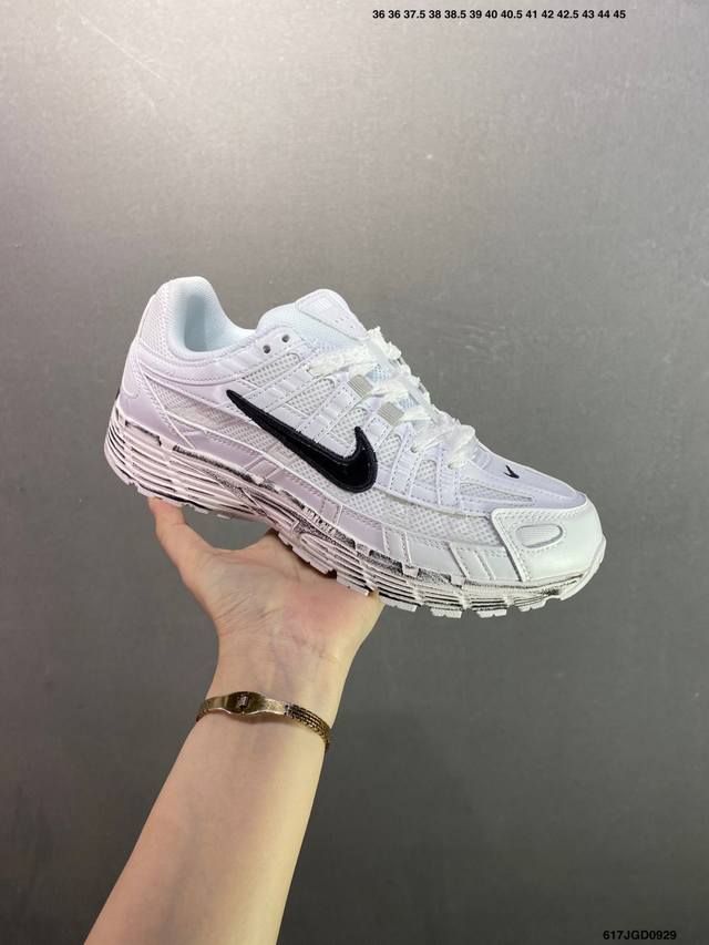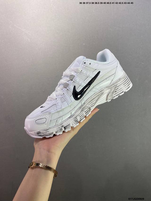 The Nike P-6000 running shoe features red hooks on both the inside and outside. Made of breathable materials and ingenious overlays, it recreates the style of a 2000s running shoe, creating a stylish look. Inspired by the Nike Pegasus 25 and 2006, the shoe offers a street-chic, sporty aesthetic while providing everyday comfort. Item No.: By1021-103