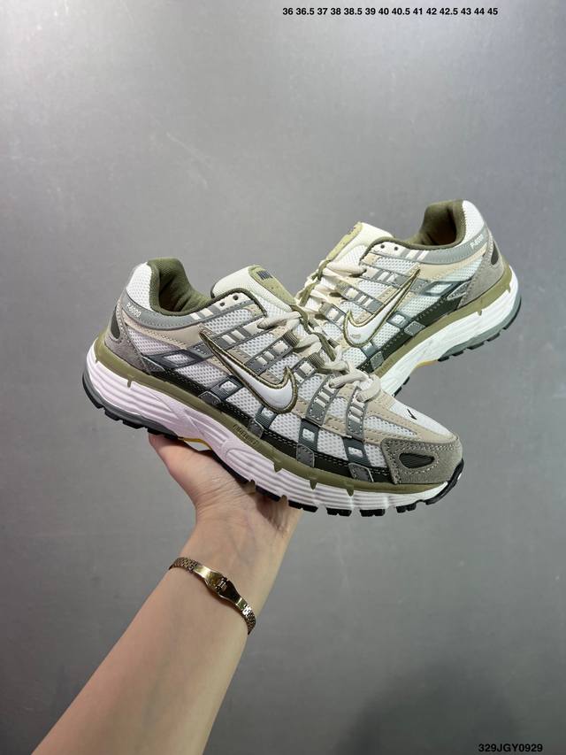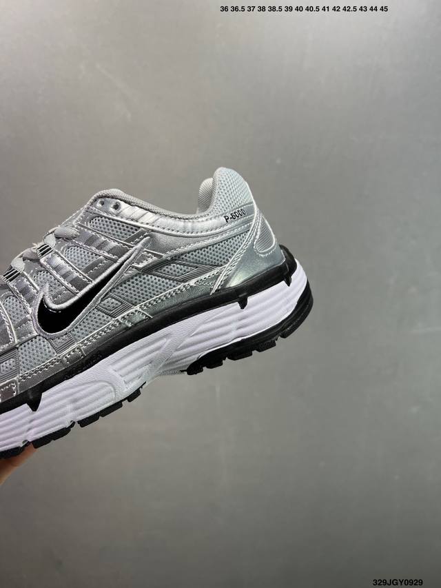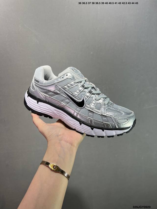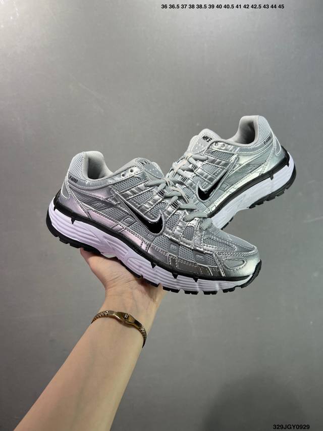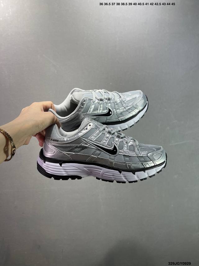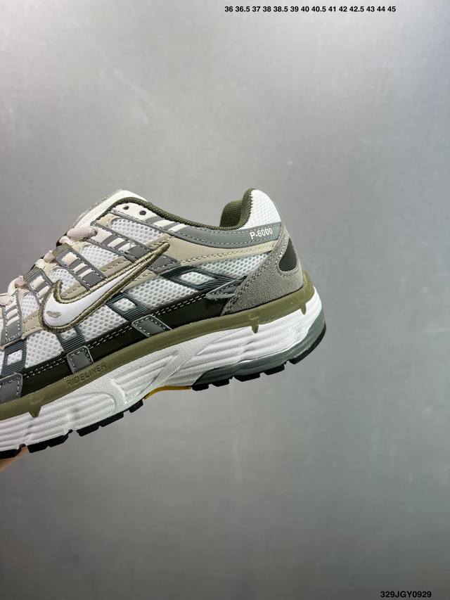 The Nike P-6000 running shoe features red hooks on both the inside and outside. Made of breathable materials and ingenious overlays, it recreates the style of a 2000s running shoe, creating a stylish look. Inspired by the Nike Pegasus 25 and 2006, the shoe offers a street-chic, sporty aesthetic while providing everyday comfort. Item No.: By1021-103
