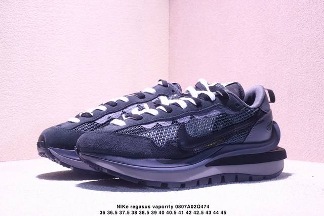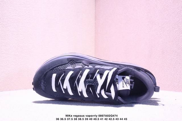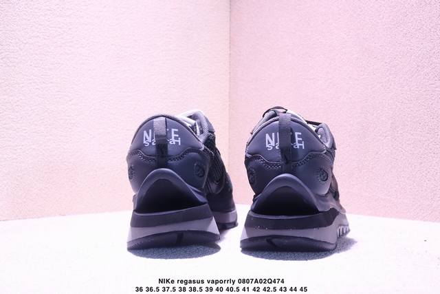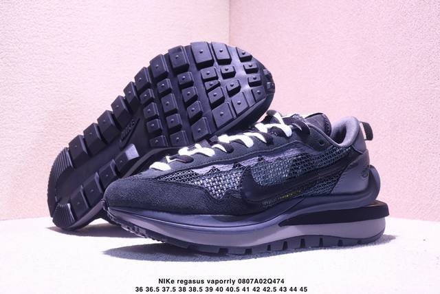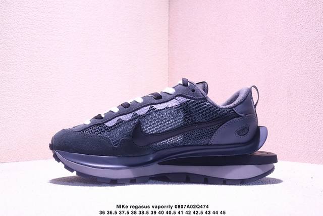 The Nike Sacai x Nike Regasus Vaporrly Sp Waffle Double Swoosh 3.0 runway shoe is made of a combination of suede and breathable mesh. The familiar deconstructed design, overlapping Swoosh, double tongue, laces, and Sacai font on the heel are all retained. #The biggest highlight is that the sole has been further enhanced, with more layers, almost comparable to the Balenciaga Triples, and the height-enhancing effect is guaranteed. Item number: Cv1363-100