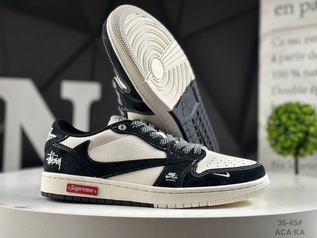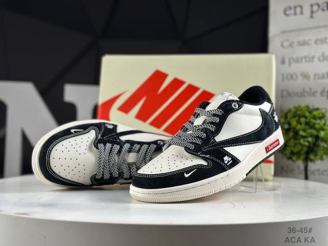 first layer half size Nike Travis Scott x Fragment Design x Jordan Air Jordan 1 Low Og Sp multi-party joint collaboration combines Travis Scott's unique musical style, Fujiwara Hiroshi's individual design style and Jordan brand classic elements to make it a pair of shoes with unique identity and value