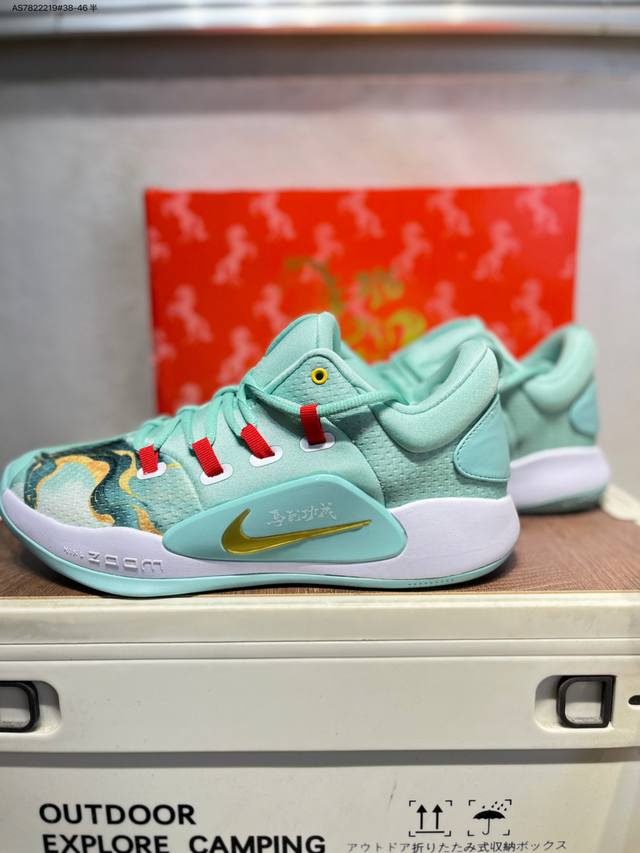 Year of the Horse Lucky Basketball Shoes Nike Hyperdunk X Low "Success Upon Arrival" DDD When fresh Chinese style meets practical basketball shoes, this limited edition Nike Hyperdunk X Low for the Year of the Horse brings the blessing of "instant success" to the court. The clear ice-blue upper is as refreshing as a spring lake, and the ink-wash texture on the toe is like a watercolor painting, perfectly blending Chinese aesthetics with street sports. The gold Swoosh paired with the "Success Upon Arrival" lettering on the upper highlights the exclusive theme of the Year of the Horse, while the red lace buckles add a festive touch. The cushioned midsole with Zoom Air ensures professional rebound performance, allowing you to stay stable on the court during breakthroughs and sudden stops. Whether it's a game on the court during the New Year or everyday street style, it allows you to find the perfect balance between comfort and style. Ar0465 As7822219#38-46 half DDD