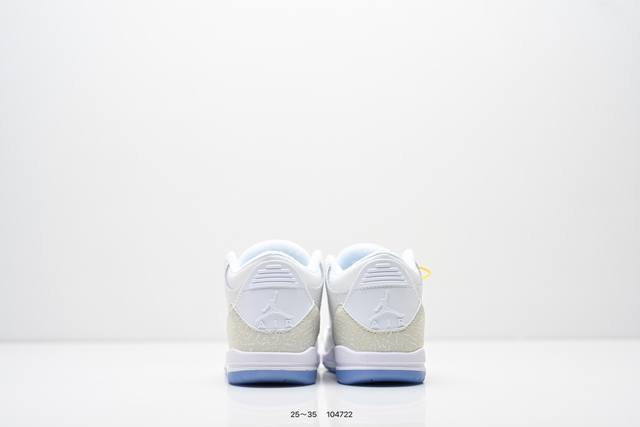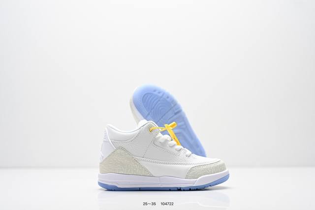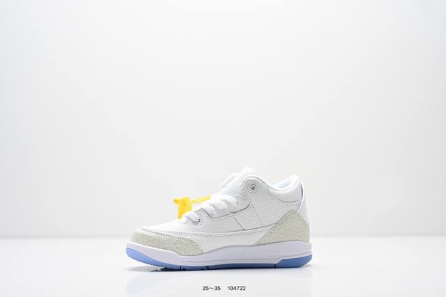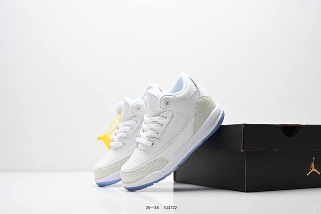 Children's Shoes: Nike Air Jordan 3 Retro Series Basketball Shoes, Men's and Women's Sports Shoes. As one of the most widely recognized sports shoes in the AJ series, it features a lightweight, visible cushioning configuration similar to the original 2580 model. Classic details and materials commemorate this legendary shoe. The upper uses a combination of fabric, leather, and synthetic materials for durability and excellent structural support. The heel features Nike Air cushioning for a lightweight and responsive feel. The rubber outsole provides strong traction for various terrains. Product Code: 134064 Code: 104722 Size: 25
