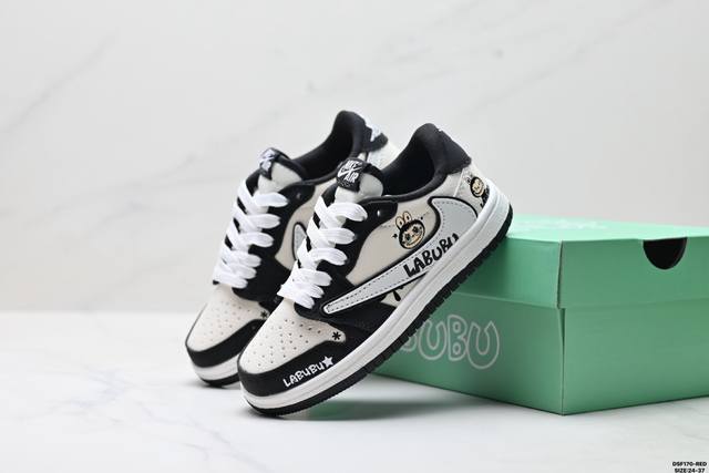 Kids' Nike Air Jordan 1 X Travis Scott AJ1 Low-Top Basketball Shoes (Reverse Swoosh) Style Code: Dz4137-106 Sizes: 24-37 ID: Dsf -Re