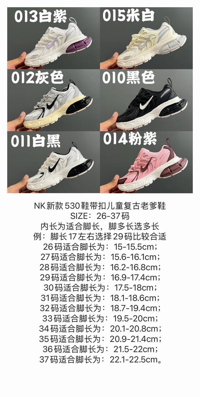 New Nike 530 Retro Dad Shoes with Lace Buckles for Kids Size: 26-37 Classic Nike dad style Comes with a pair of lace buckles for easier on and off High-quality fabric construction for a premium feel Wear-resistant and non-slip outsole for unparalleled comfort