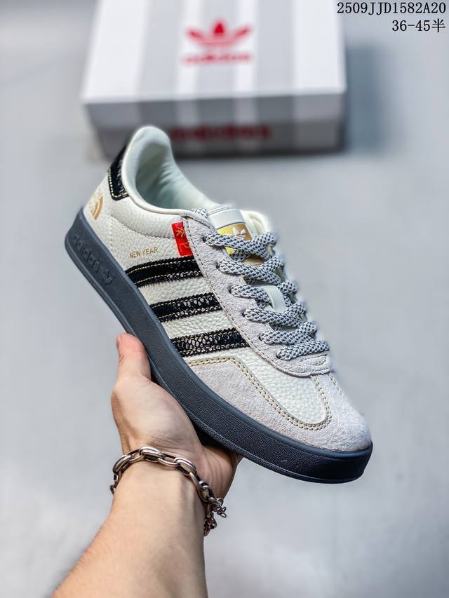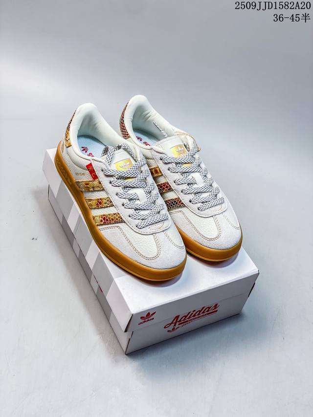 #New Product Photos: Upgraded Bm Version#Half-Size Available for Men and Women#Original Last Development#Using Litchi-Pattern Cowhide Leather Upper#Environmentally Friendly Sea Glass Insole#External RB Rubber Outsole. This creative and custom collaboration features the renowned outdoor brand The North Face and Gazelle Indoor Trainers. These low-top, retro-inspired, versatile casual sneakers feature a "Year of the Snake" design in a "Co-branded Off-White Python Print." Ch6336-718