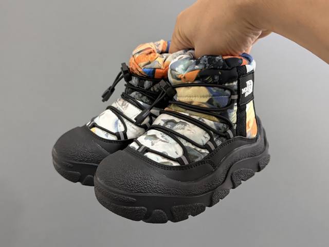 The North Face New Lace-up High-top Children's Snow Boots DDD Size: 26-37 DDD Classic The North Face high-top snow boot style DDD Elastic lace-up buckle design for easy adjustment DDD Fleece lining for warmth and comfort DDD Rubber non-slip outsole for a great feel DDD