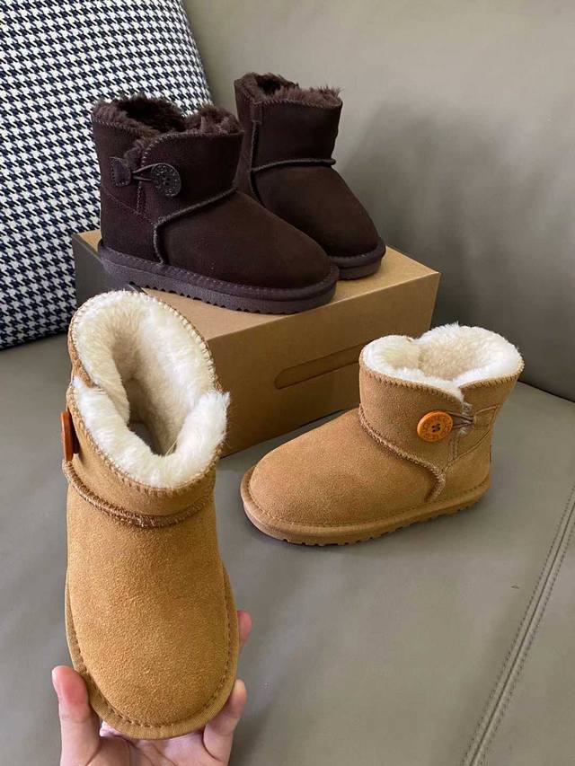Original image straight from the camera. The upper is made of suede cowhide, with a thick, long-pile lining, making them super comfortable and warm. The button design doesn't feel cheap. The sole is non-slip and wear-resistant. Size: 21-37.