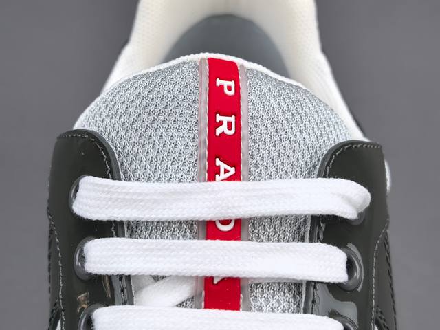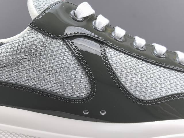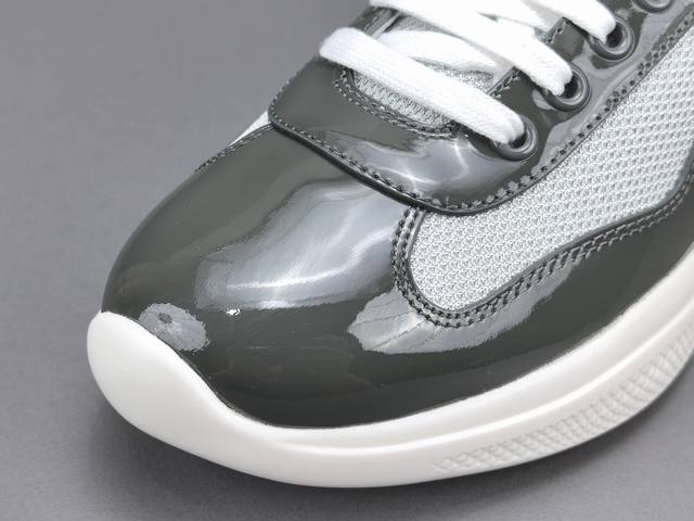Counter Edition Prada America's Cup Patent Leather Round Toe Lace-Up Stylish Non-Slip Wear-Resistant Low-Top Sneakers
