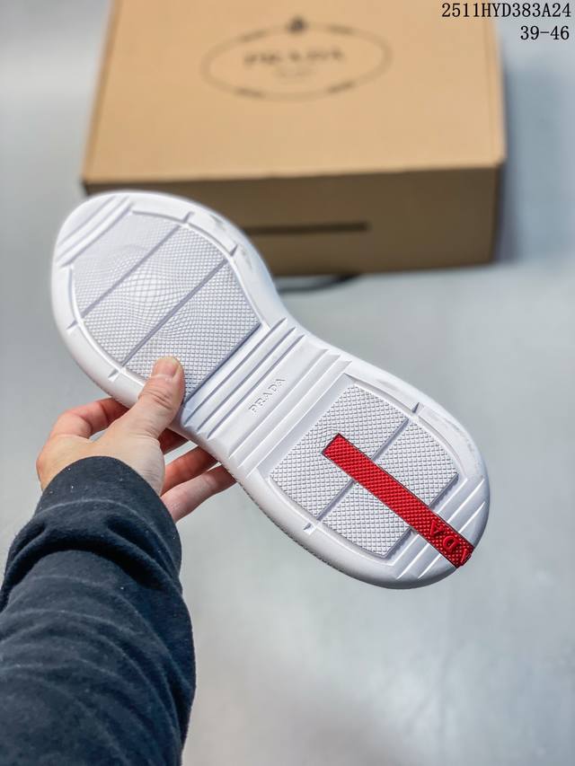 Export quality, Dongguan original, top-quality, 1:1 replica. Prada Linea Rossa logo showcases unique design style. Overseas best-selling version. Low-top casual sports shoes, 3cm lightweight and flexible sole, rubber tread pattern. Same quality as imported goods, high-end retail, genuine export product. Perfect last, correct color, texture comparable to the original. Details are consistent with the original. Please distinguish from other market versions. Sizes: 39 40 41 42 43 44 45 46. 11Hyd384A25