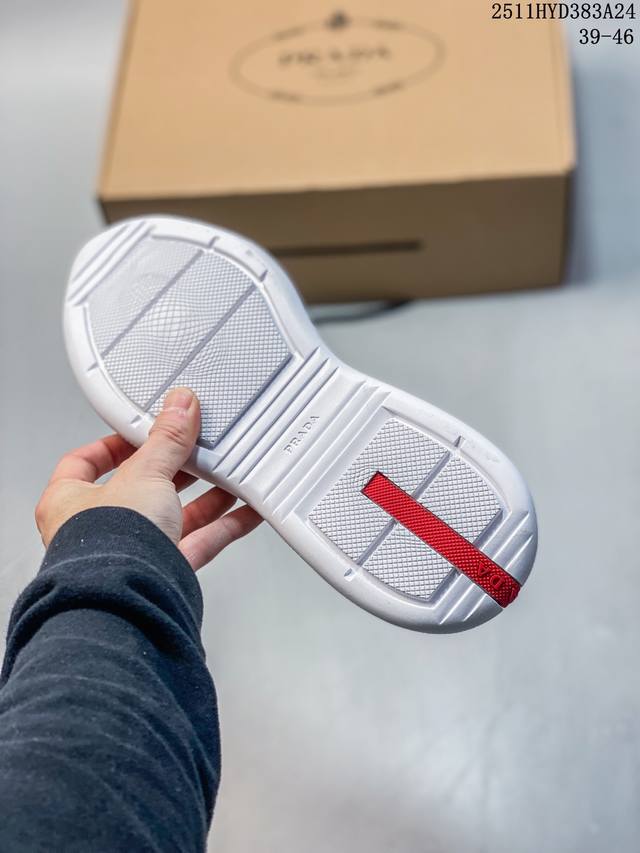 Export quality, Dongguan original, top-quality, 1:1 replica. Prada Linea Rossa logo showcases unique design style. Overseas best-selling version. Low-top casual sports shoes, 3cm lightweight and flexible sole, rubber tread pattern. Same quality as imported goods, high-end retail, genuine export product. Perfect last, correct color, texture comparable to the original. Details are consistent with the original. Please distinguish from other market versions. Sizes: 39 40 41 42 43 44 45 46. 11Hyd384A25