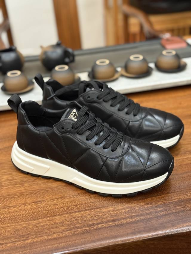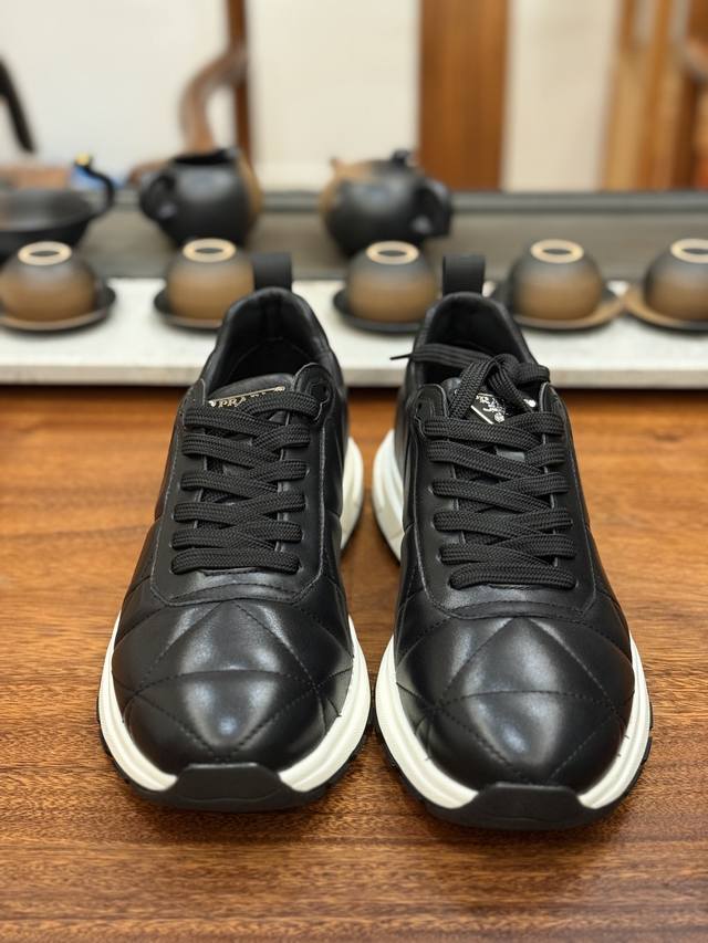 New Arrival# Prada thick-soled logo lace-up sports casual men's shoes series, synchronized with the quality of Guangdong factory counters, with a more stylish personality, more trendy, more eye-catching, and more sophisticated, it will subvert the old ideas and share with you the essential fashion trendsetters. Made of original imported calfskin leather lining, the rubber foam outsole is lightweight, non-slip and wear-resistant, and has a comfortable feel. The style is durable and the workmanship is exquisite. The simple and neat shoe last highlights a man's courage and toughness. Size: 39-44 leather shoe size