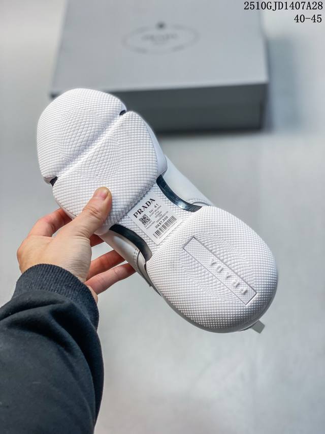 This Prada sneaker collection offers diverse colorways and avant-garde designs, creating a variety of stylish choices. The white version is simple and sophisticated, embodying understated luxury; the red version is vibrant and bold, releasing an unrestrained personality; the fluorescent green version is daring and eye-catching, playing with the rules of trendsetting; and the all-black version is cool and pure, interpreting a dark and stylish look. Each pair uses comfortable materials and a unique silhouette, covering sizes 40-45. Whether for everyday wear or trendy social occasions, these shoes allow you to step out with your own unique style and become the focus of street fashion. 10Gjd1407A28