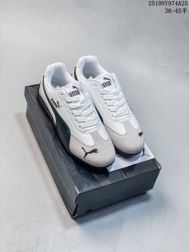 Puma Speedcat Og Puma Roma Amor series versatile retro sports casual racing shoes. Leading the trend with a fun and avant-garde retro design, these shoes blend racing spirit with street fashion, embarking on a cutting-edge racing journey. The Roma model features a retro streamlined design on the side adorned with the classic BMW logo, cleverly attracting attention. The Speedcat model features bright tri-color stripes on a comfortable upper, giving it a unique aesthetic personality, embodying the endless energy of racing. Official product number: 39884609 Sizes 36-45