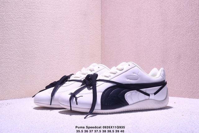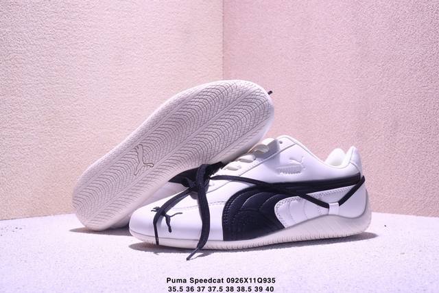 Authentic Rose x Puma Speedcat Og double-lace, non-slip, wear-resistant lifestyle sneakers. Blending Rose's innate effortless charm with a sporty aesthetic. Padded collar for a soft, non-abrasive feel. Thin rubber sole for lightweight, comfortable, and durable comfort. Premium leather and embroidered Puma logo complement each other. Xm0926Q935