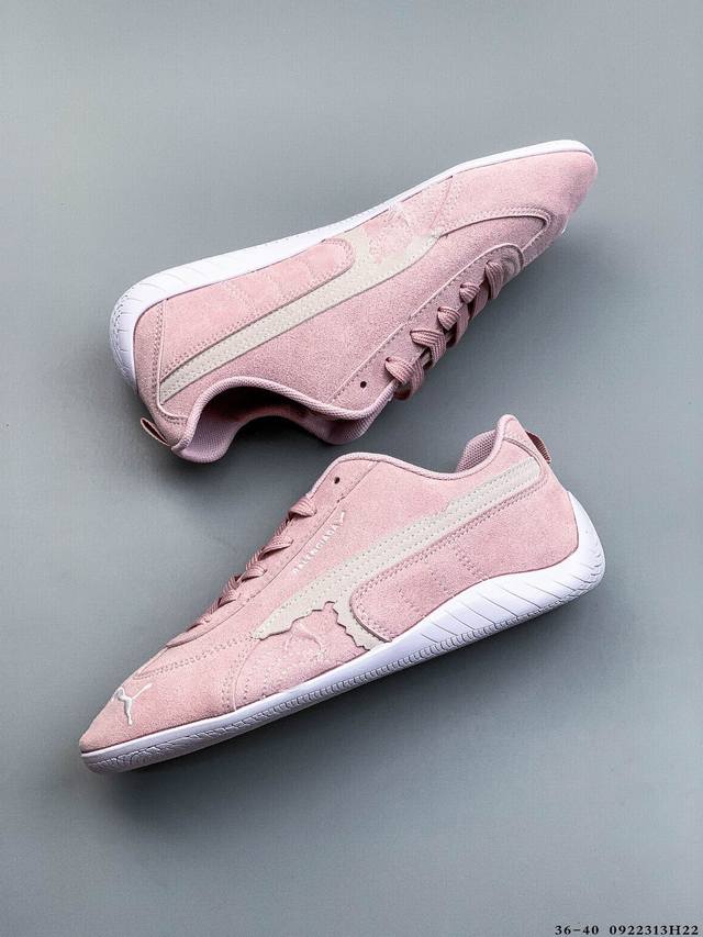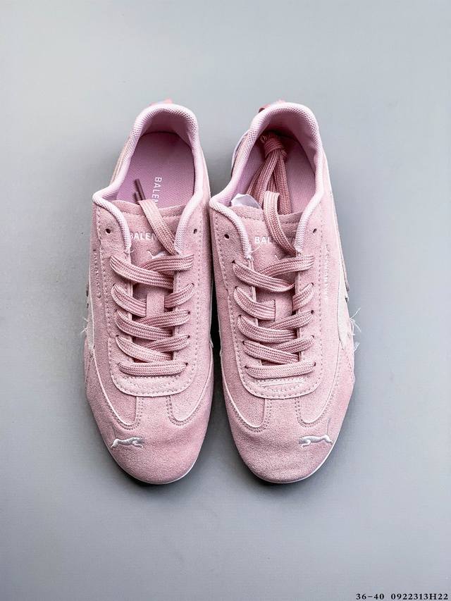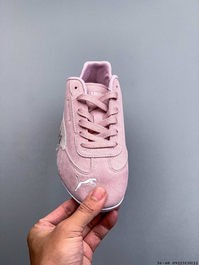 Company Level! Puma x Balenciaga Speedcat series thin-soled shoes. Round-toe, distressed, low-top casual shoes with cowhide suede.
