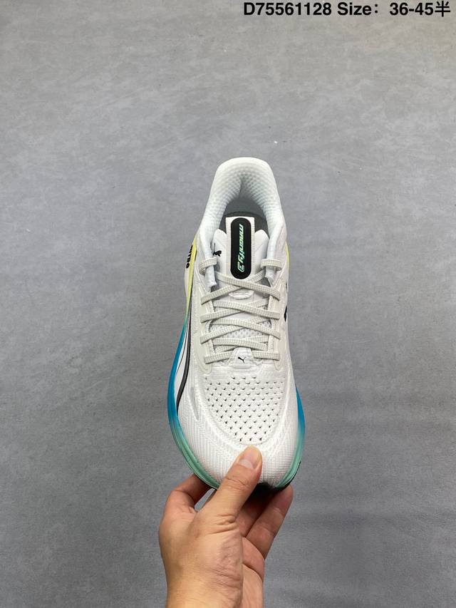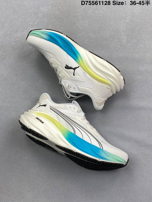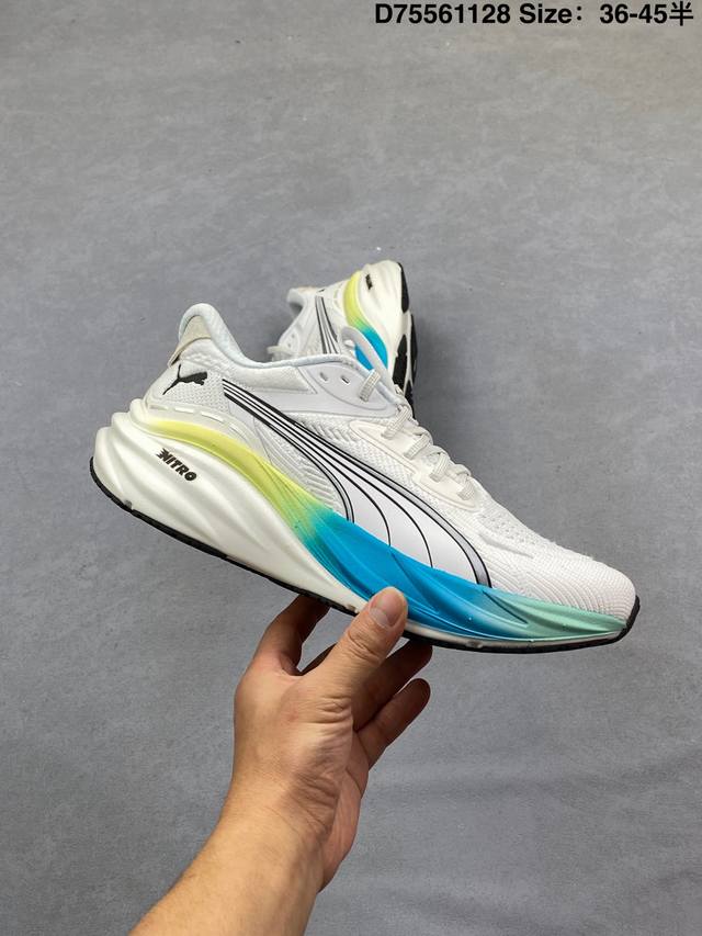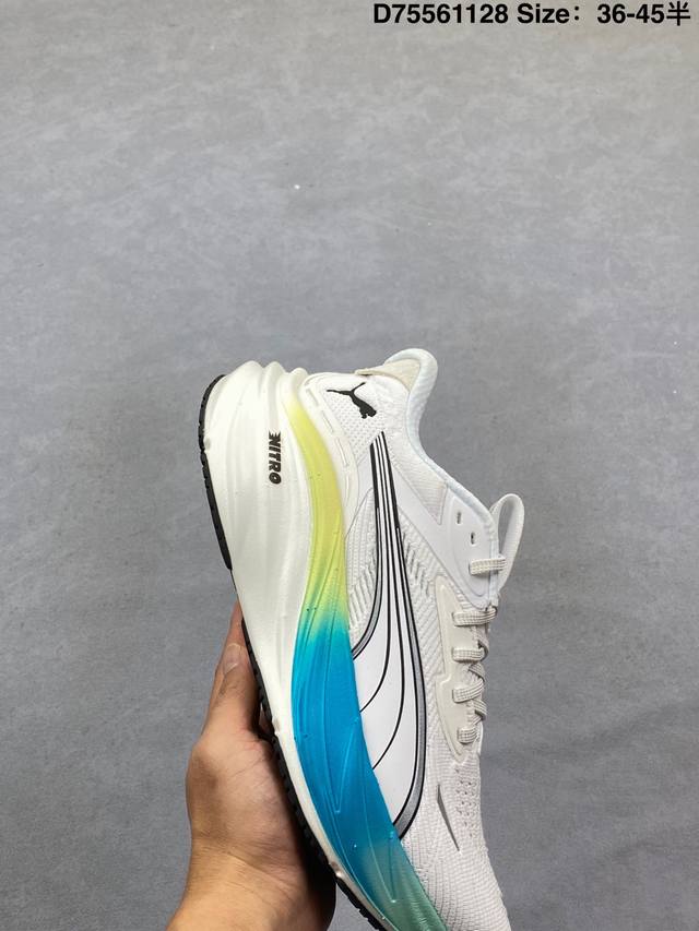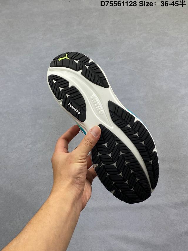 Company-grade Puma Deviate Nitro 3 Cushioned Training Running Shoes, Breathable, Comfortable, Slip-resistant, Wear-resistant, Low-top Casual Running Shoes. The outsole uses Puma's Puma Magrip outsole, providing excellent control and grip in any condition. The engineered mesh upper provides a comfortable and snug fit. The upper features a large mesh design for increased breathability. The tongue has a semi-strap design and uses small areas of foam. In addition to the foam on the tongue, there is also considerable foam around the heel and ankle. This improves the shoe's comfort, lockdown, and heel security. Product Code: 311046-07. Sizes: 36, 37, 37.5, 38, 38.5, 39, 40, 40.5, 41, 42, 42.5, 43, 44, 45. Code: D75561128.