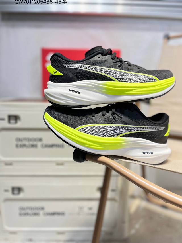 ) Factory Grade Puma Deviate Nitro 2 Comfortable, Slip-Resistant, Wear-Resistant Low-Top Casual Running Shoes for Men and Women, Black and White (