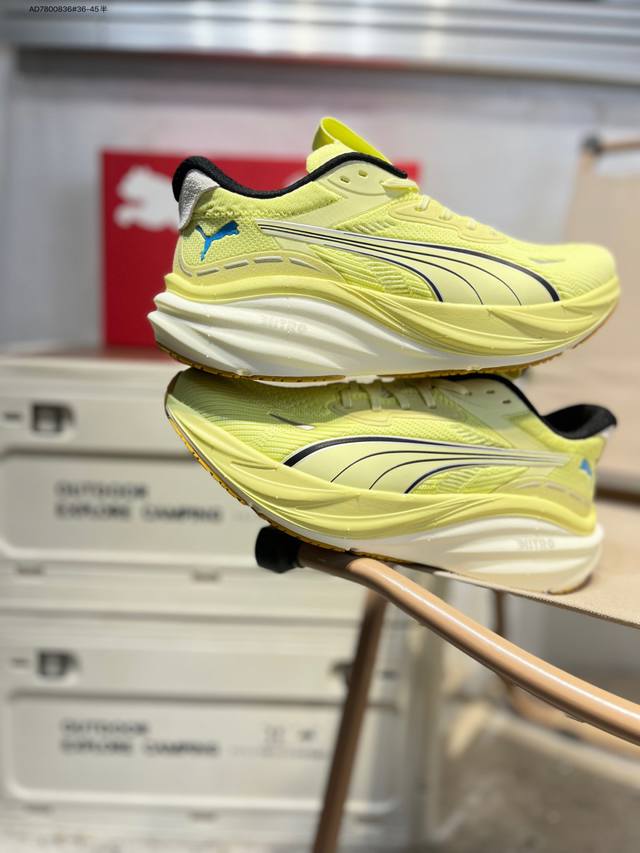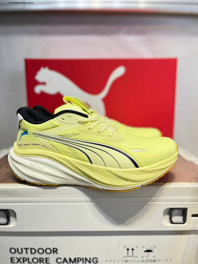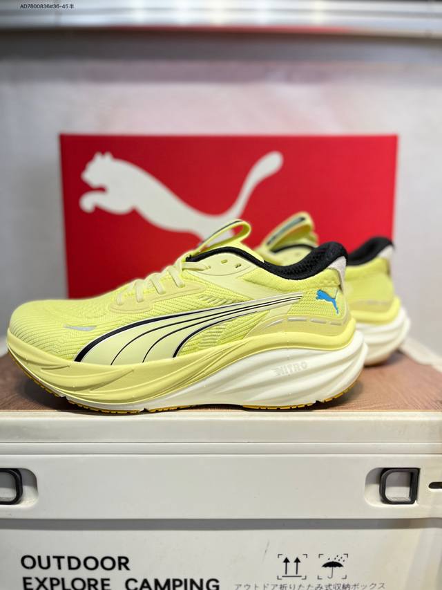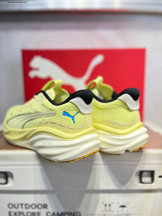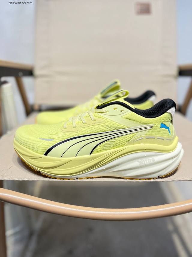 Puma Magnify Nitro 3 running shoes combine functionality and aesthetics for energy storage during runs. Featuring a Puma Nitro nitrogen midsole, it boasts lightweight and highly cushioned rebound for a soft and comfortable feel. The simple, flowing lines of the Puma running track add a touch of dynamism to the shoe. The upper is made of lightweight, high-elastic fabric, providing breathability, comfort, and a snug fit while ensuring durability and support for rapid running. The supercritical Nitro nitrogen midsole combined with a thick sole provides comfortable cushioning and energy return, making it suitable for both running and commuting. The Puma streamlined running track on the side is presented in bright colors, outlining a vibrant athletic aesthetic. The outsole uses Puma Magrip rubber, which is slip-resistant and durable, giving runners a flexible and free running experience. 311046 Ad7800836#36-45 Half DDD