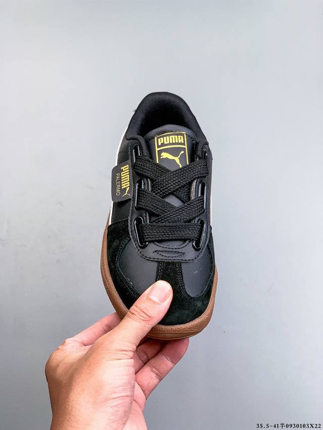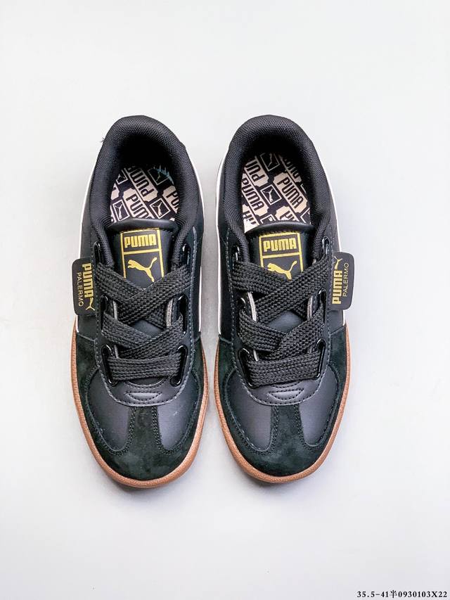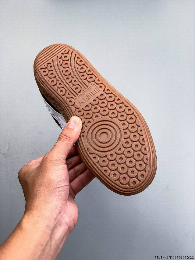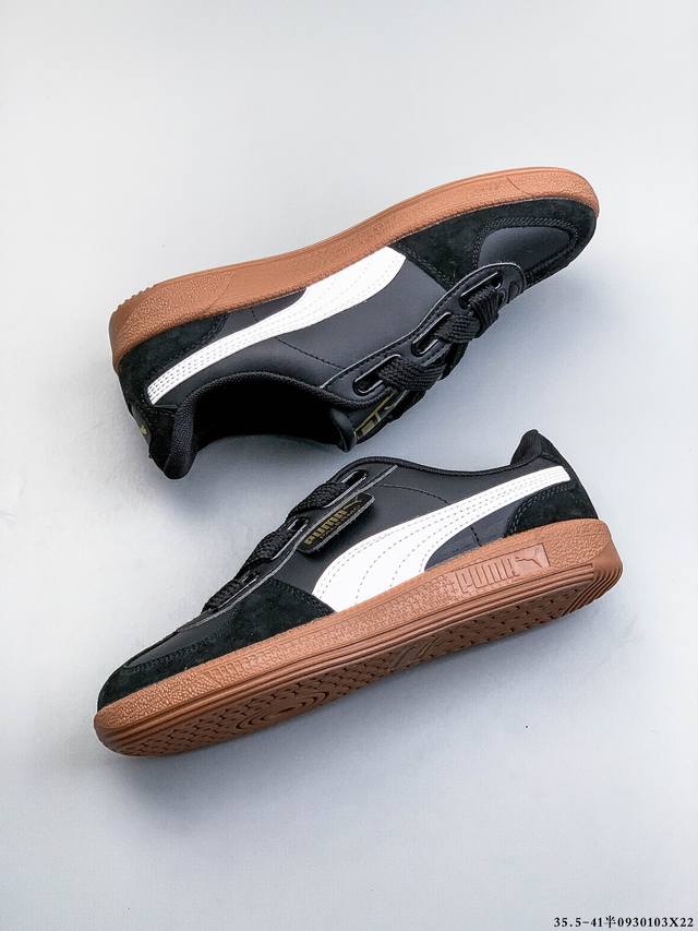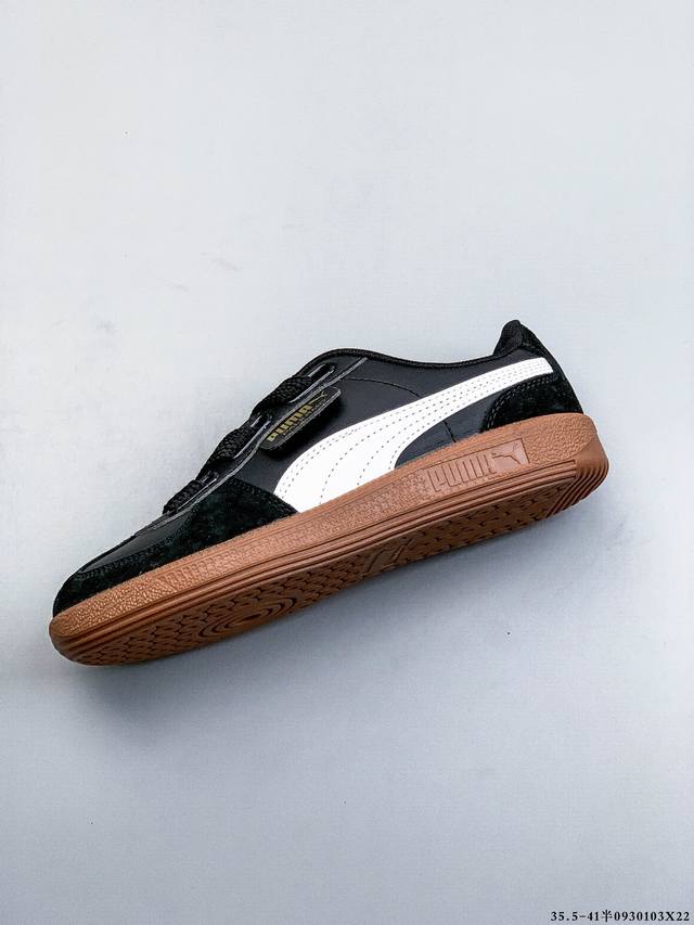 Puma Palermo Og Unisex Sneaker Retro, Relive the Football Culture! Puma recently brought the classic Palermo back to the market, allowing sneaker enthusiasts and football fans to relive the football culture of the 1980s. This classic retro version retains the iconic blue and white color scheme, featuring a retro T-shaped toe and classic brown sole, interpreting the charm of football civilization with traditional design language. This retro version perfectly recreates the classic design while incorporating modern elements. The shoe body is adorned with a gold-stamped Puma logo, echoing the cougar logo on the heel, showcasing the brand's iconic style. The classic blue and white color scheme evokes the passion and energy of the 1980s football field. 0930103X22