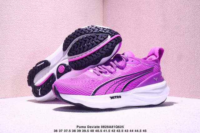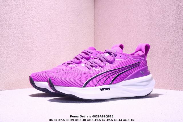 Puma Puma original last and paper version development version, using ergonomic mesh structure upper material, double-layer Nitro nitrogen technology midsole, external ultra-light and wear-resistant outsole. Puma Deviate Nitro Elite Mag Max elite top cushioning series low-top nitrogen ultra-lightweight racing leisure sports jogging shoes
