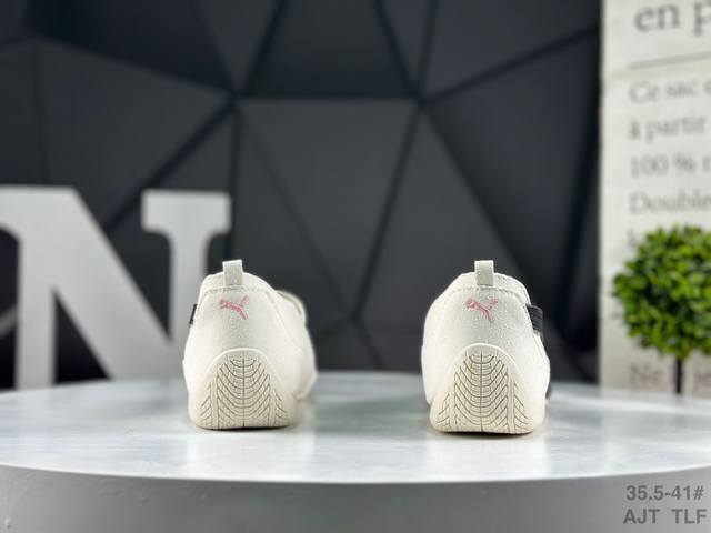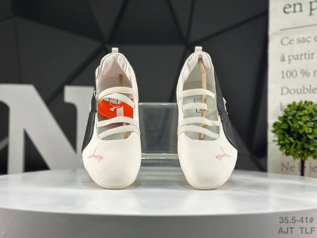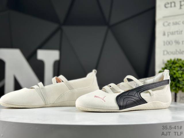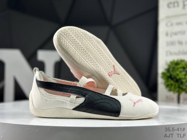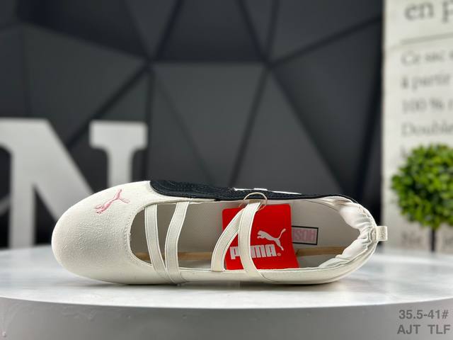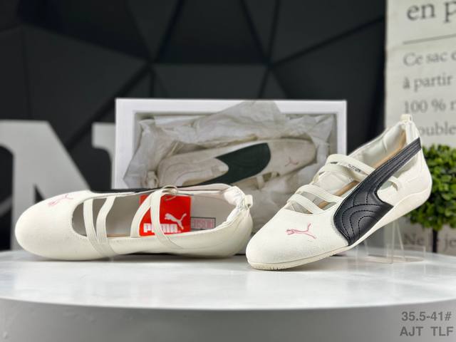 PUMA Speedcat Comfortable and Versatile Ballet Strap Hollow Sweet Design Contrast Color Casual Shoes for Women White and Black 404395-01