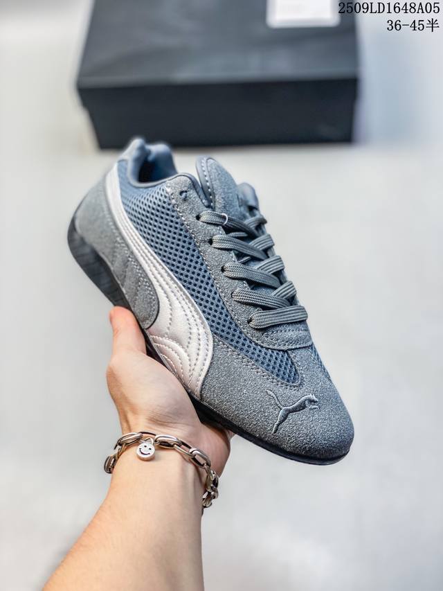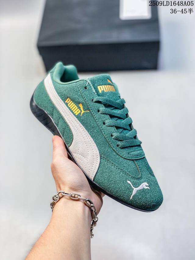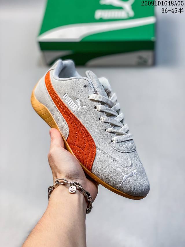 puma Speedcat Og, a versatile piece from the Puma Roma Amor series, is a retro sports and leisure racing shoe that leads the trend with its fun and avant-garde retro design, integrating the spirit of the racetrack into street fashion and embarking on an avant-garde racing journey. The Roma shoe features a retro streamlined shape on the side of the shoe, embellished with the classic BMW logo, which cleverly attracts the eye. The Speedcat shoe features a bright three-color stripe element on the comfortable upper, giving it a unique personality and aesthetic, interpreting the endless energy of racing. Official article number: