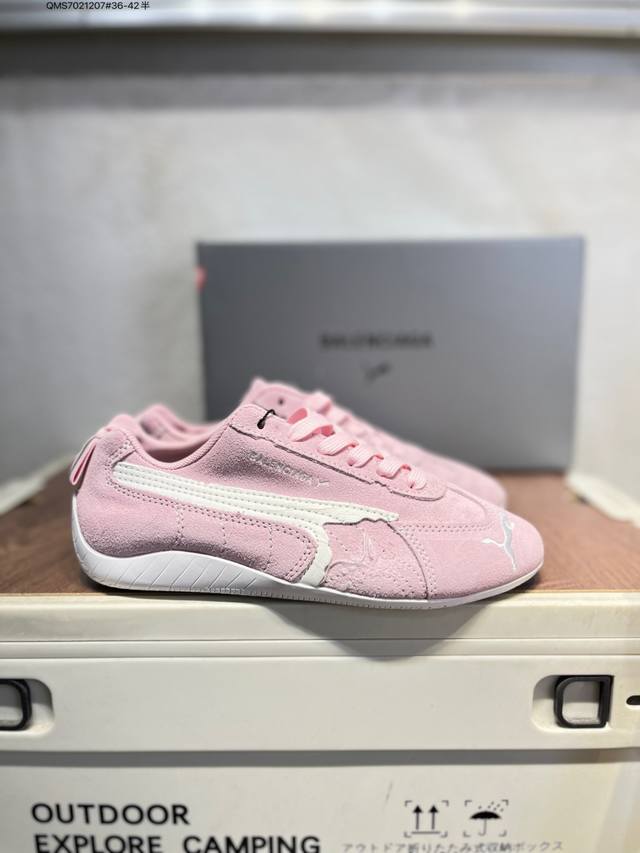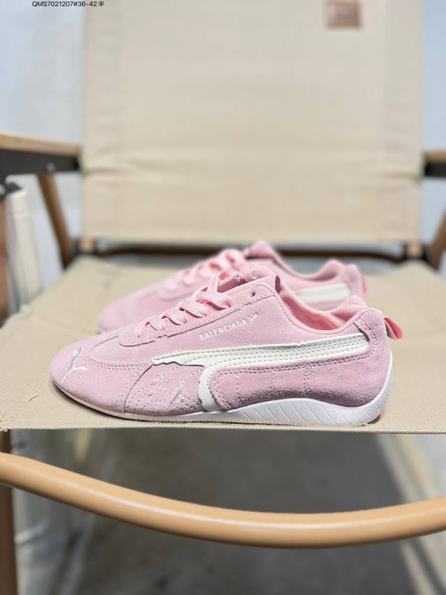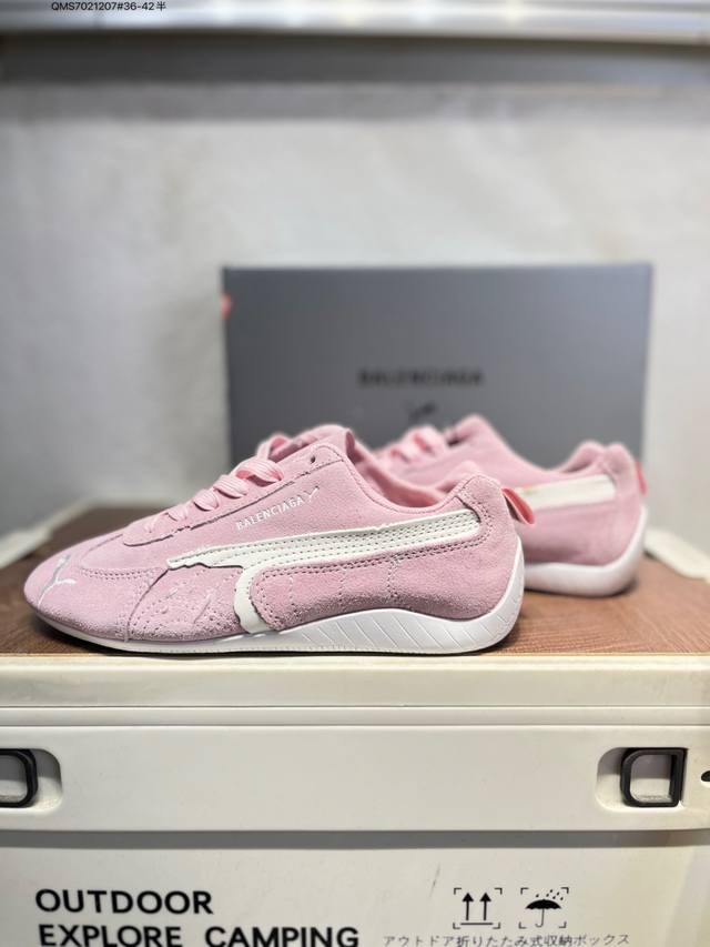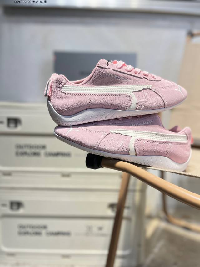 Puma x Balenciaga Speedcat series thin-soled cowhide suede round toe distressed low-top casual shoes. Genuine version. Lightweight and breathable upper for comfort and a pleasant wearing experience. Soft lining for added comfort. Rubber outsole provides lasting traction. 406519 Qms7021207# 36-42 half size.