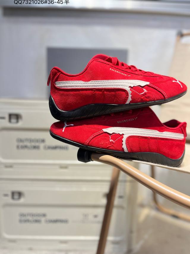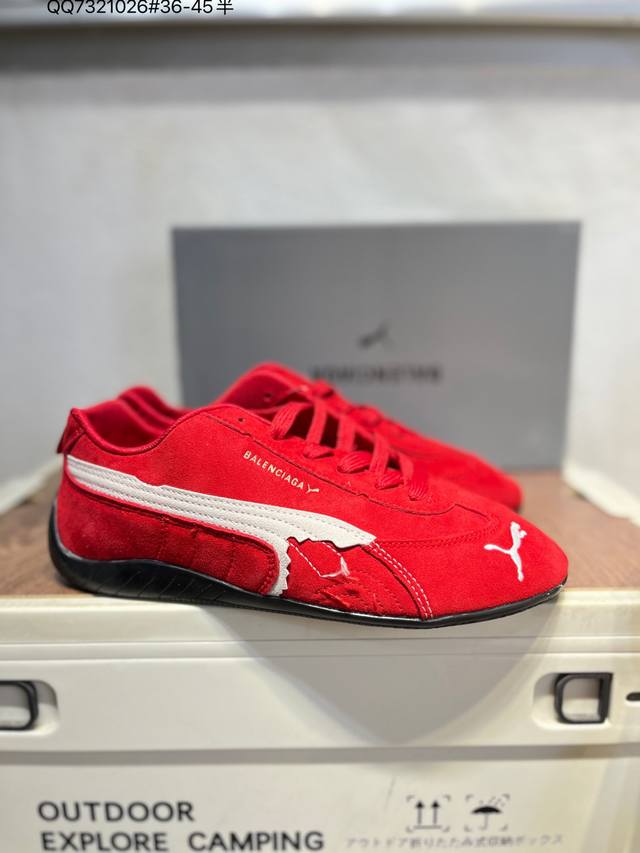 Puma x Balenciaga Speedcat series thin-soled cowhide suede round toe distressed low-top casual shoes. Genuine version. Lightweight and breathable upper for comfort and a premium feel. Soft lining for added comfort. Rubber outsole provides lasting traction. 847146 Qq7321026 # Sizes 36-45.5.