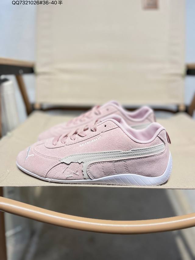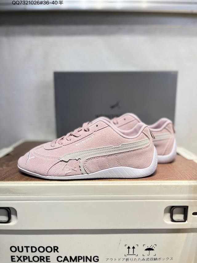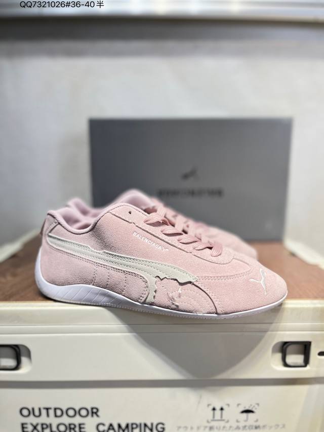 Puma x Balenciaga Speedcat series thin-soled cowhide suede round toe distressed low-top casual shoes. Genuine version. Lightweight and breathable upper for comfort and a pleasant wearing experience. Soft lining for added comfort. Rubber outsole provides lasting traction. 847146 Qq7321026 # Sizes 36-40.5
