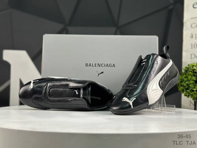 / Puma x Balenciaga Speedcat series thin-soled patent leather round toe distressed