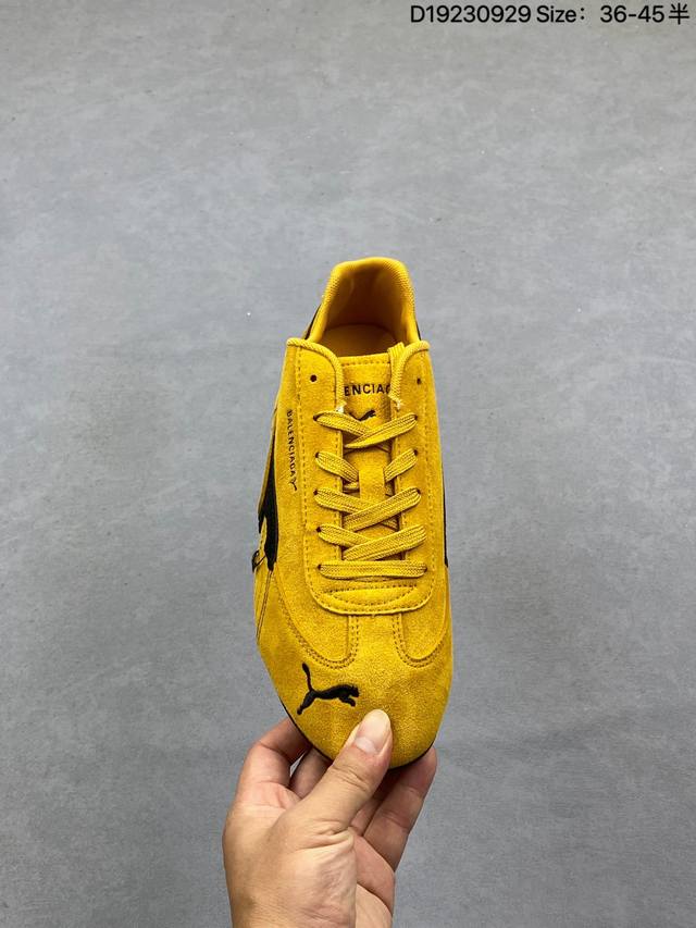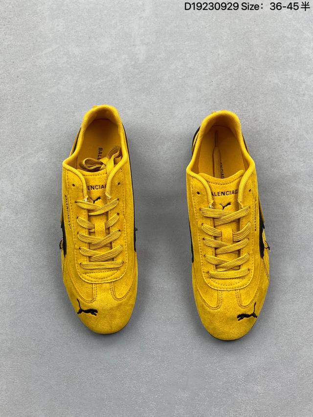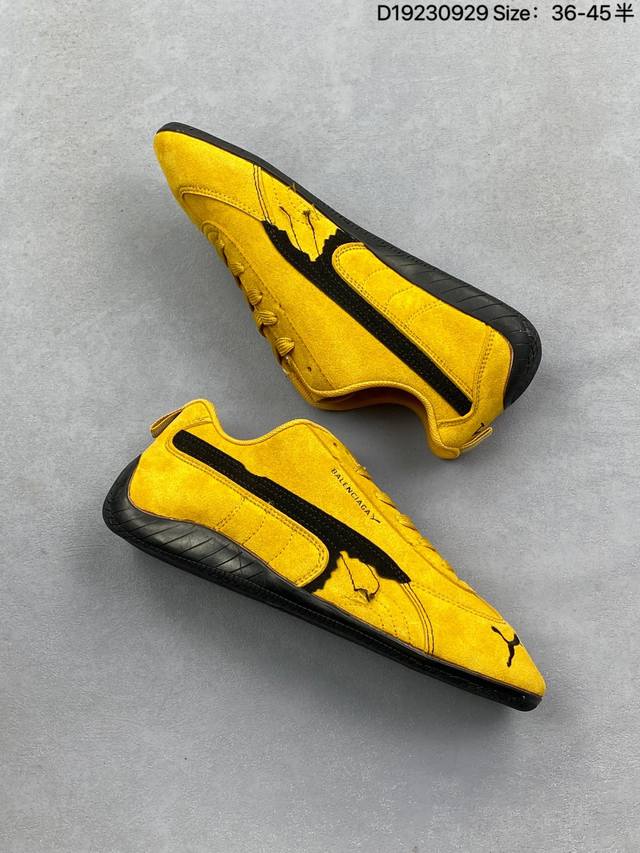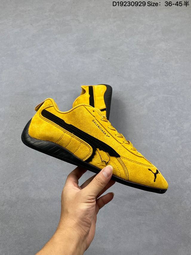 PUMA X Balenciaga Speedcat series thin-soled shoes, cowhide suede round-toe, distressed, low-top lifestyle shoes.