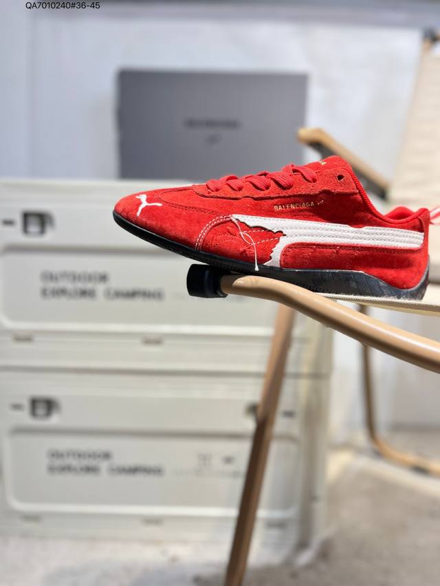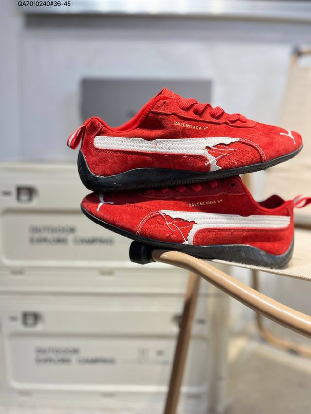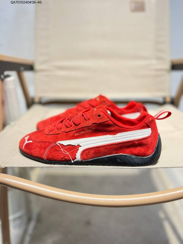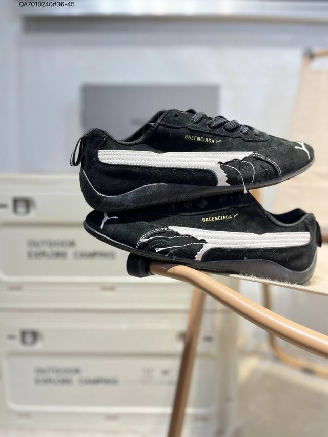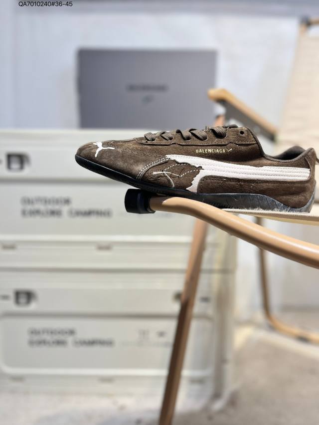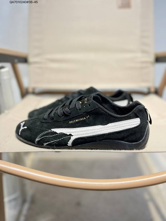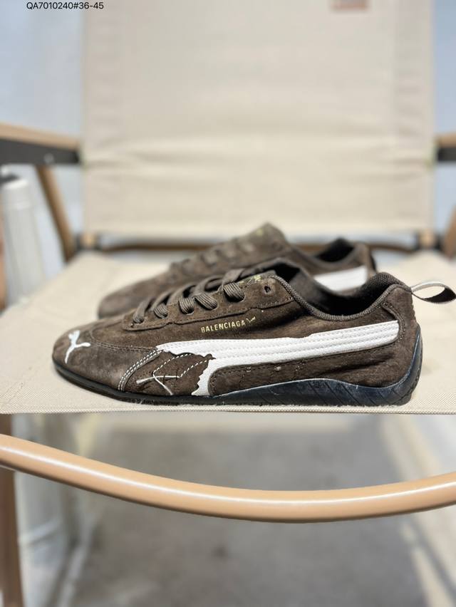 PUMA X Balenciaga Speedcat series thin-soled shoes. Round-toe, distressed, low-top casual shoes with cowhide suede.