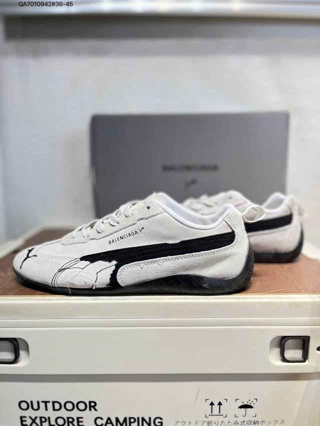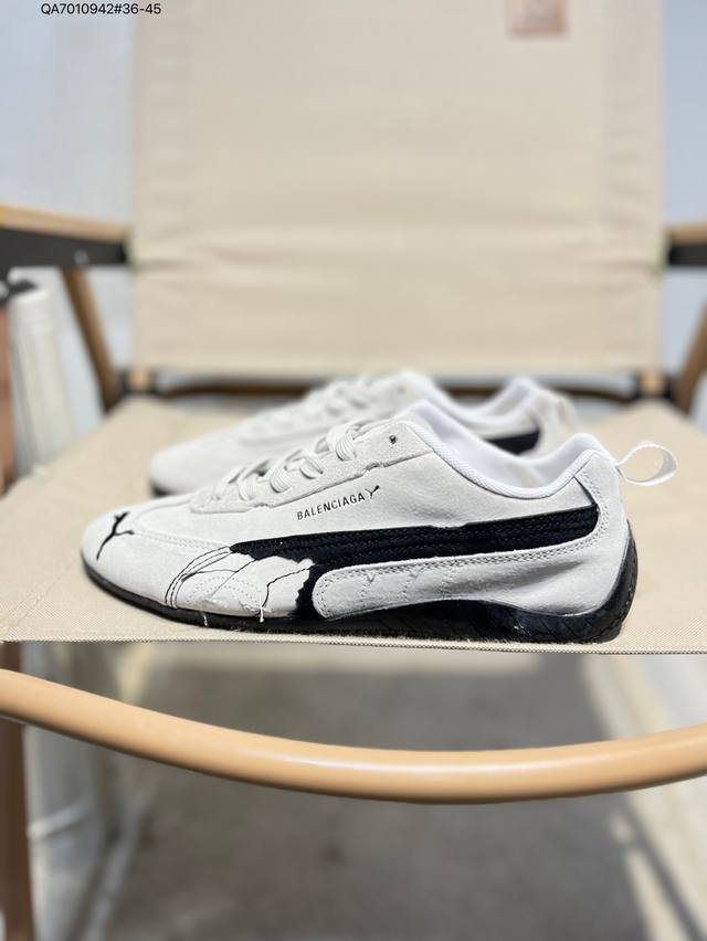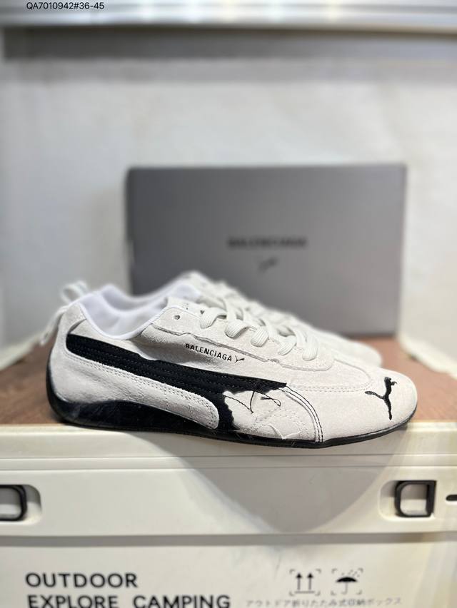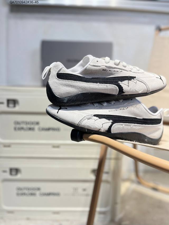 PUMA X Balenciaga Speedcat series thin-soled shoes. Round-toe, distressed, low-top casual shoes with cowhide suede.