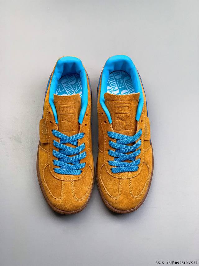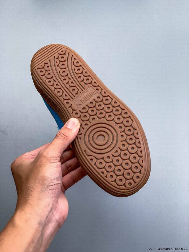 Recently, Puma has brought back the classic Palermo, allowing sneakerheads and football enthusiasts to relive the football culture of the 1980s. This classic reissue retains the iconic blue and white colorway, featuring a retro T-toe design and a classic brown rubber sole, embodying the charm of football culture with traditional design language.