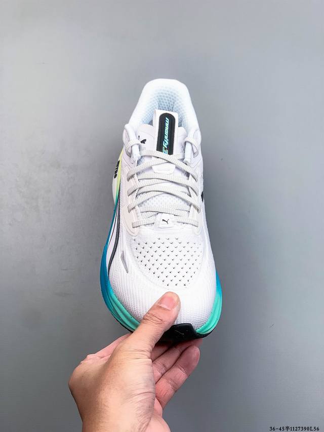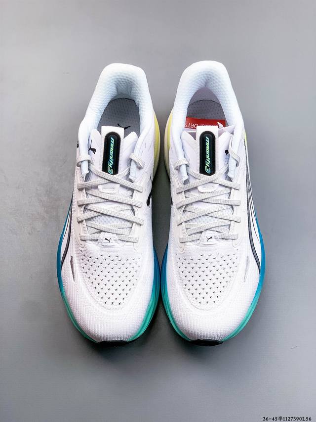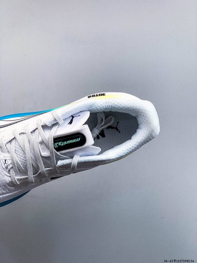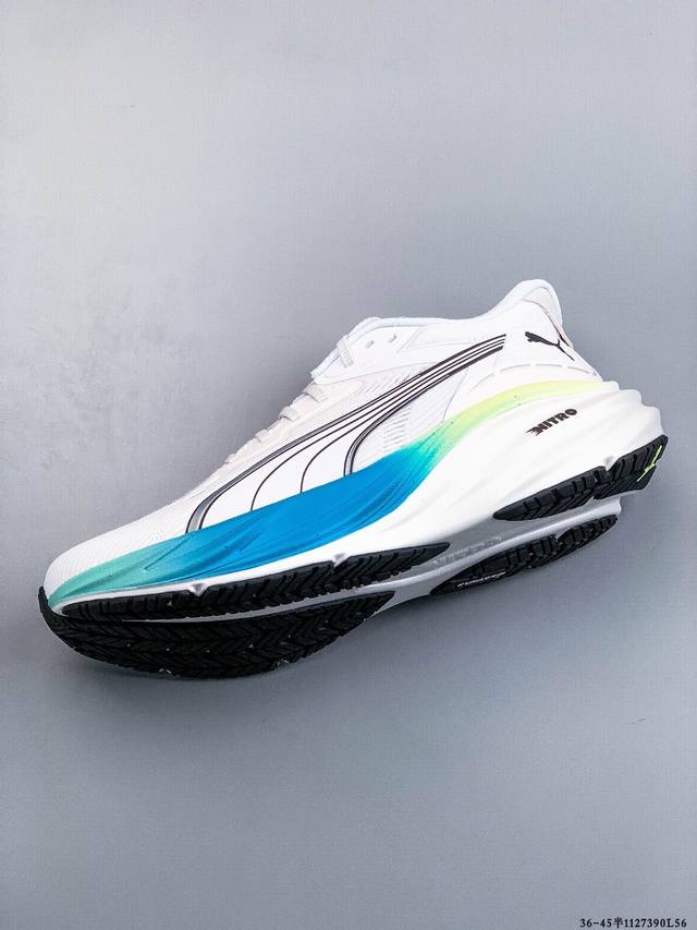 Pure Original Puma Deviate Nitro 3 Cushioned Training Running Shoes, Breathable, Comfortable, Slip-Resistant, Wear-Resistant, Low-Top Casual Running Shoes. The outsole uses Puma's Puma Magrip outsole, providing excellent control and grip in any condition. The engineered mesh upper offers a comfortable and snug fit. The upper features a large mesh design for increased breathability. The tongue has a semi-strap design and uses small areas of foam. In addition to the foam on the tongue, there is also considerable foam around the heel and ankle. This improves the shoe's comfort, lockdown, and heel security. Product Code: 311046-01 11 27390L56