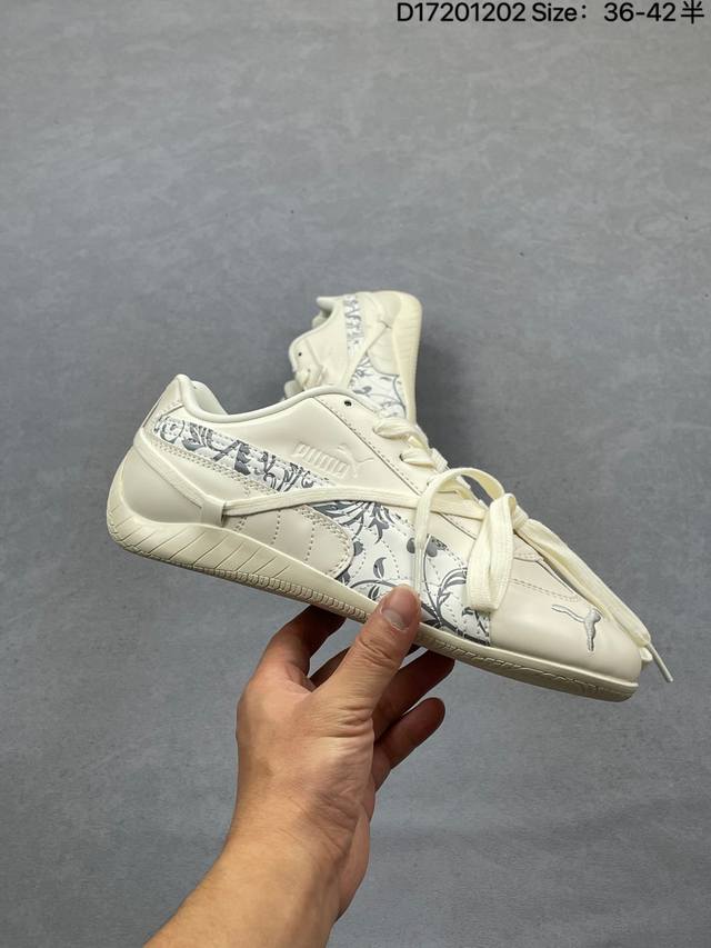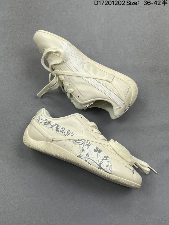 Rose X Puma Speedcat Collaboration Low-Top Casual Shoes, First Release on the Market. Made with original materials, data, and paper last using a second molding process. 'High-top' molding technique. Item No.: 404390 01. Sizes: 36-42. (Ddd D17201202 DDD)