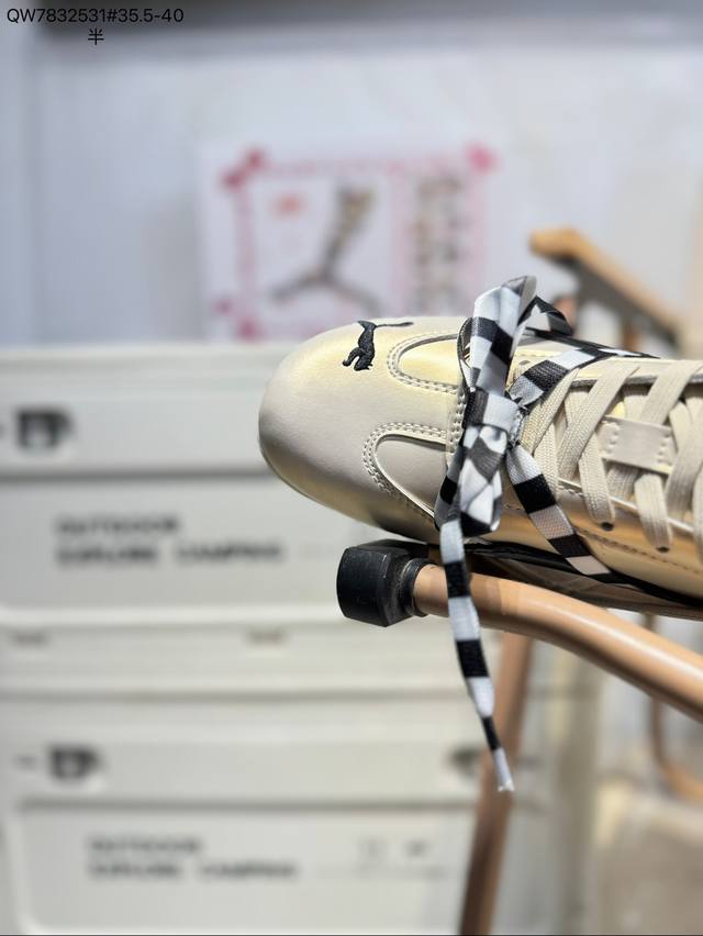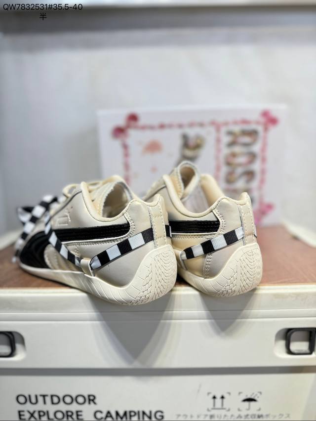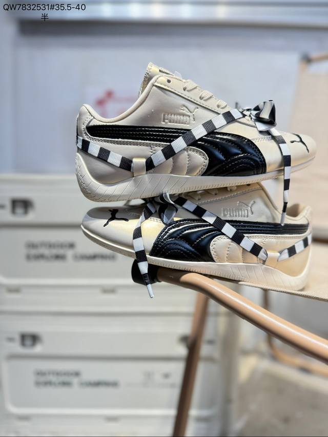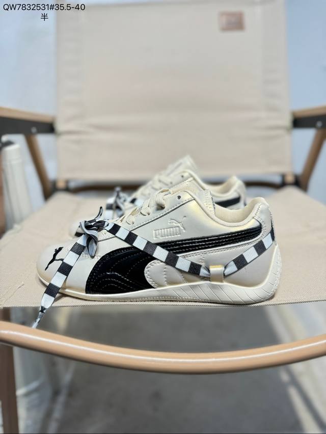 Rose X Puma Speedcat Collaboration Racing Training Double Lace-up Casual Sports Low-top Sneakers. With a fun and avant-garde retro design, these shoes lead the trend, blending racing spirit into street fashion and embarking on a cutting-edge racing journey. The Roma model features a retro streamlined design on the side adorned with the classic BMW logo, cleverly attracting attention. The Speedcat model features bright tri-color stripes on a comfortable upper, giving it a unique aesthetic and embodying the endless energy of racing. 404392