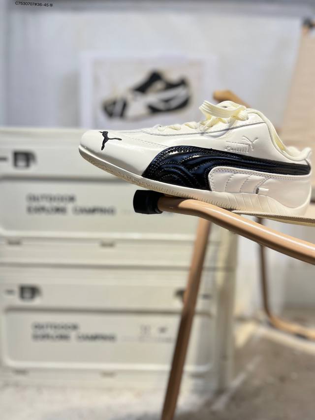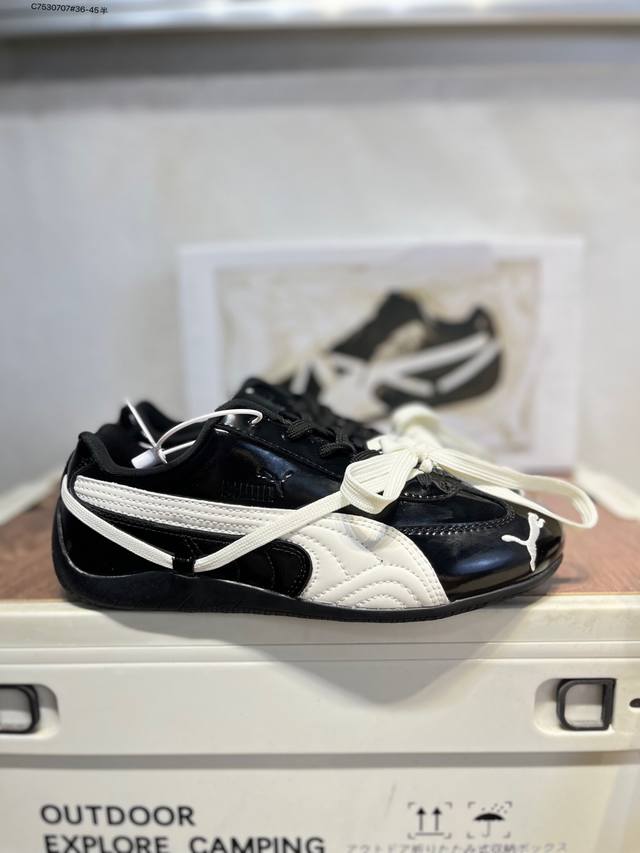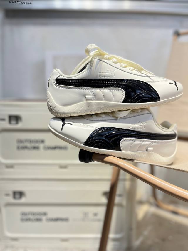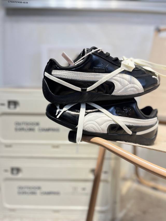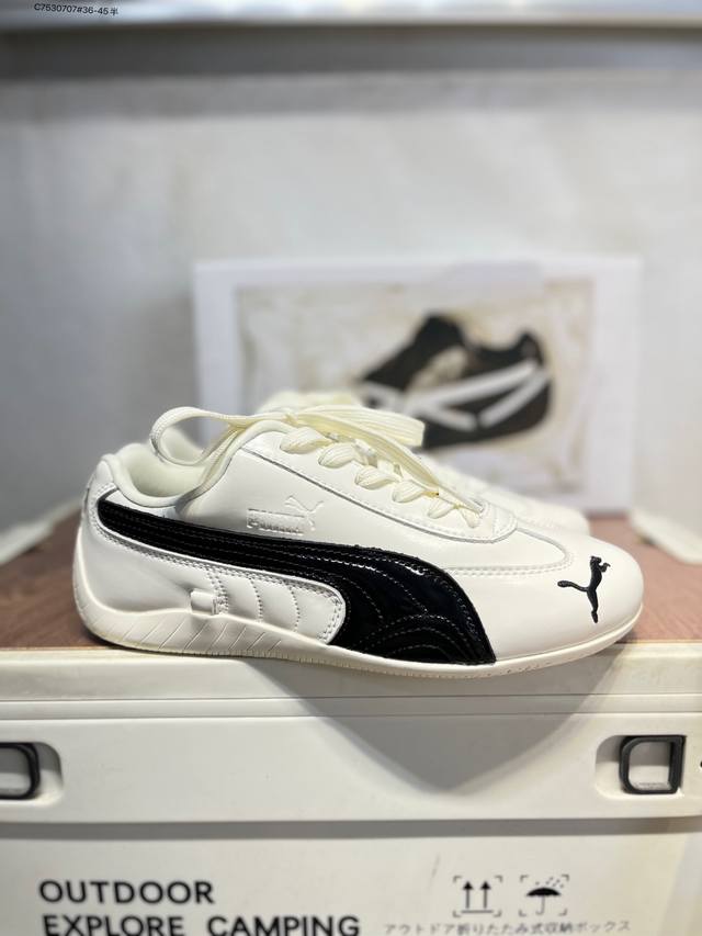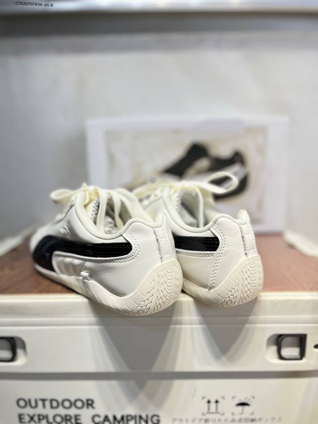 Rose X puma Speedcat collaboration racing training double-lace-up casual sports low-top sneakers lead the trend with a fun and avant-garde retro design, integrating the spirit of racing into street fashion and embarking on an avant-garde racing journey. The Roma model features a retro streamlined design on the side adorned with the classic BMW logo, cleverly attracting attention. The Speedcat model features bright tri-color stripes on a comfortable upper, giving it a unique aesthetic personality and interpreting the endless energy of racing. 404391 C7530707#36-45 half DDD