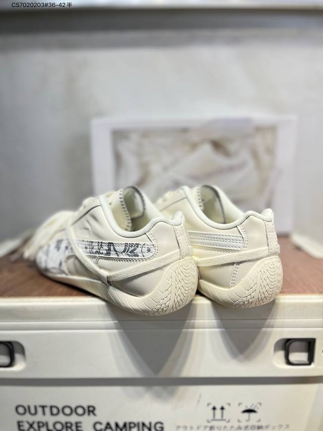 Rose X puma Speedcat collaboration racing training double-lace-up casual sports low-top sneakers lead the trend with a fun and avant-garde retro design, blending the spirit of racing into street fashion and embarking on a cutting-edge racing journey. The Roma model features a retro streamlined design on the side adorned with the classic BMW logo, cleverly attracting attention. The Speedcat model features bright tri-color stripes on a comfortable upper, giving it a unique aesthetic personality and embodying the endless energy of racing. 404390 Cs70 3#36-42 Half DDD
